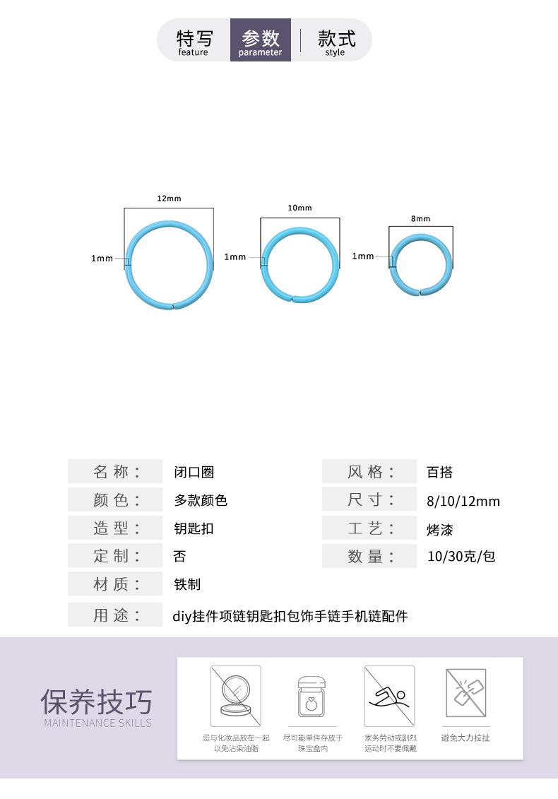 Anillo de hierro de color de 8/10/12 mm, anillo cerrado, anillo de conexión, accesorios hechos a mano para bricolaje, llavero, material auxiliar, colgante