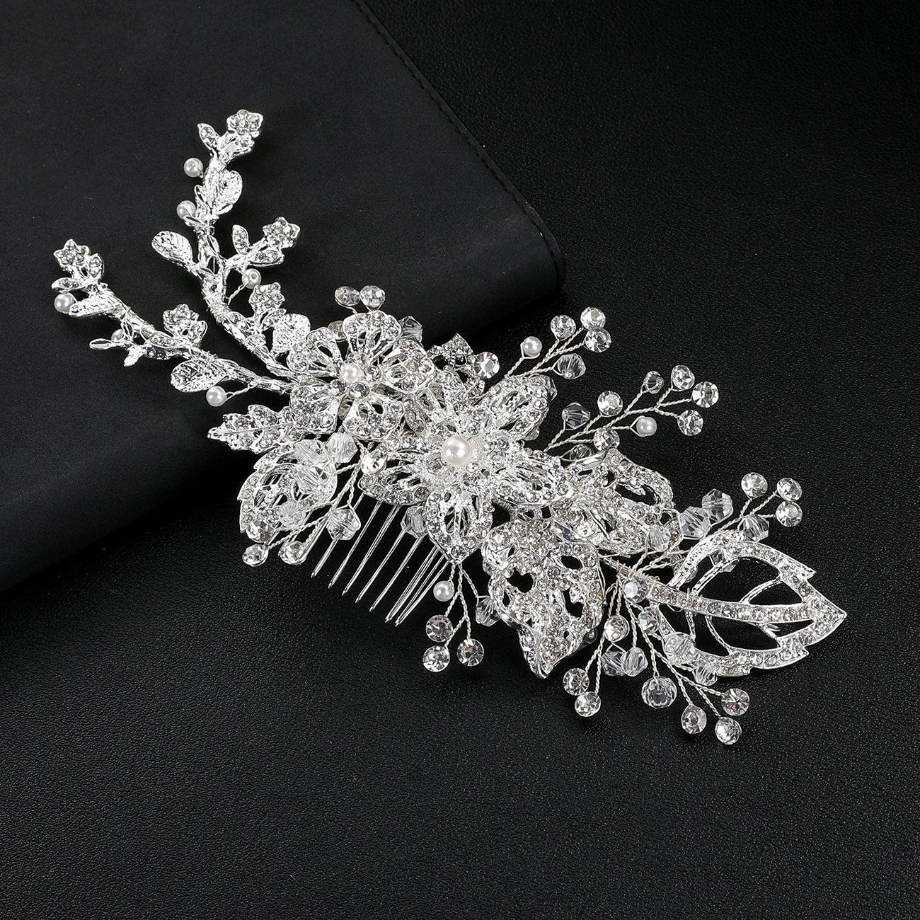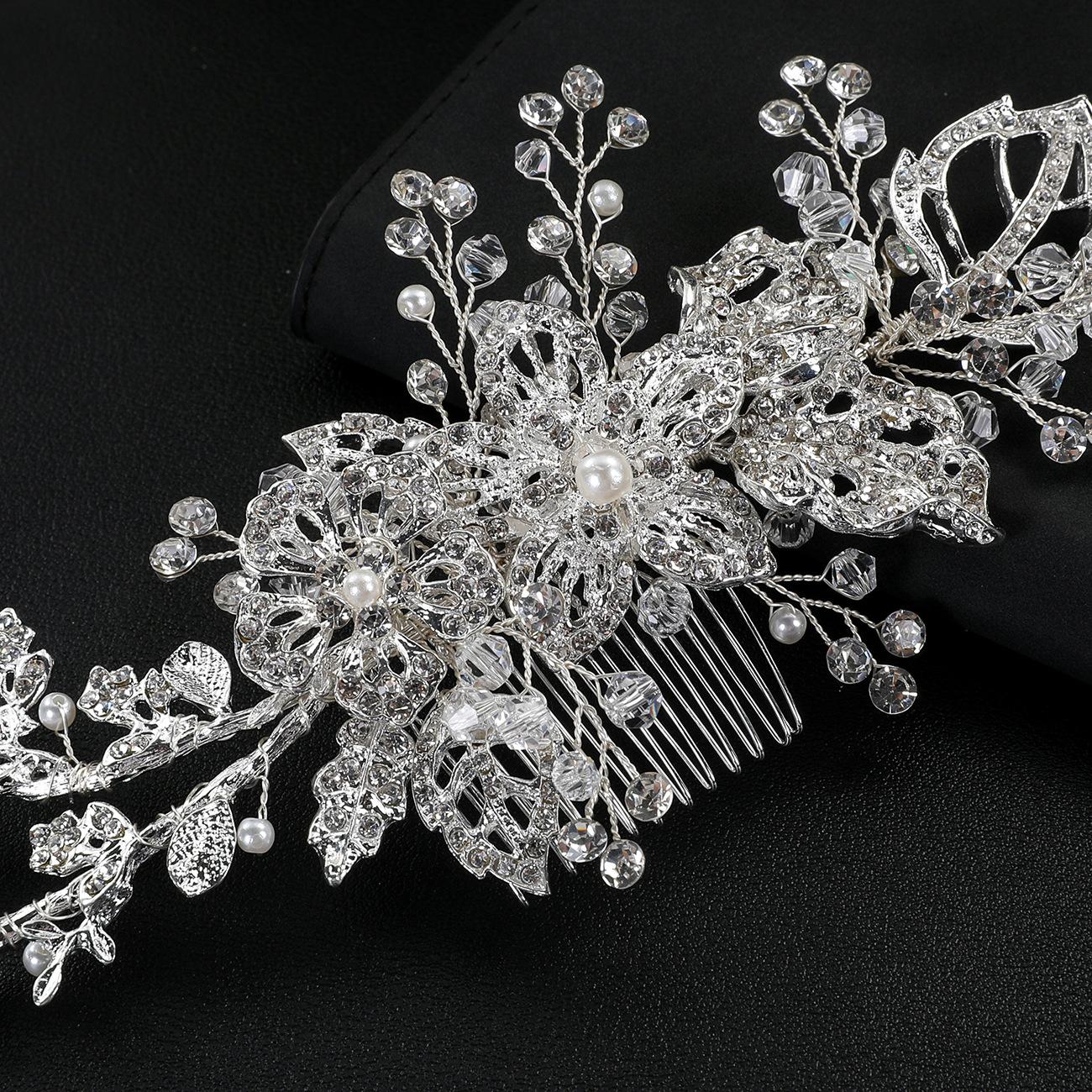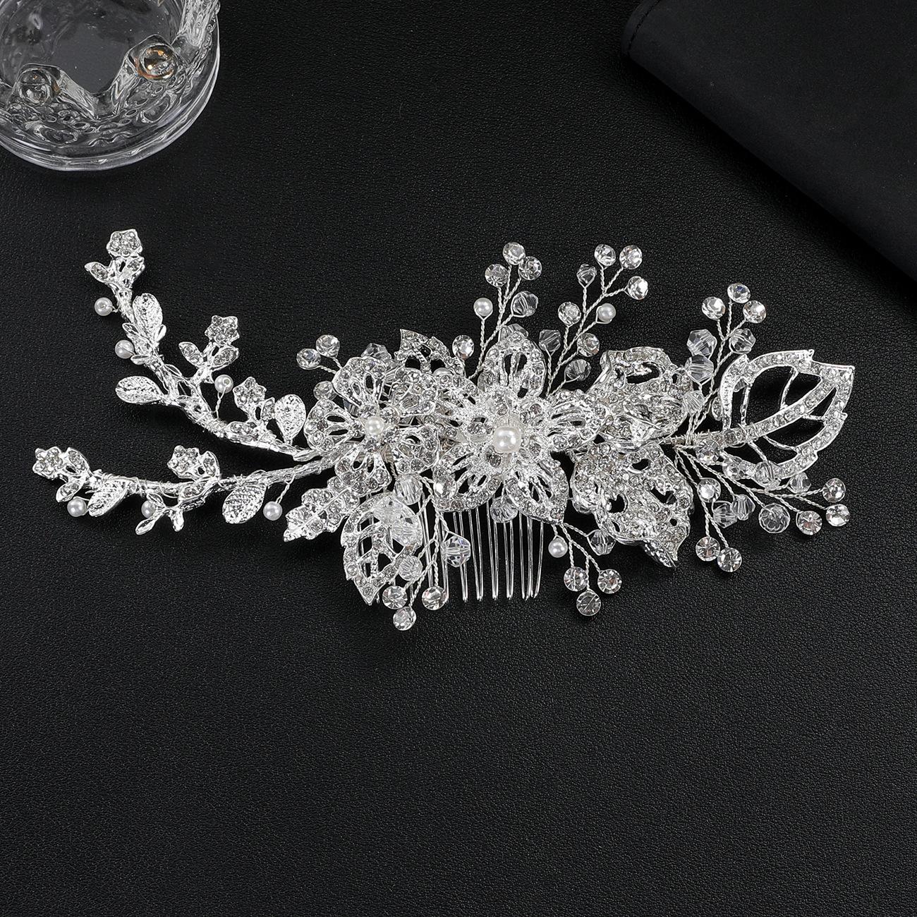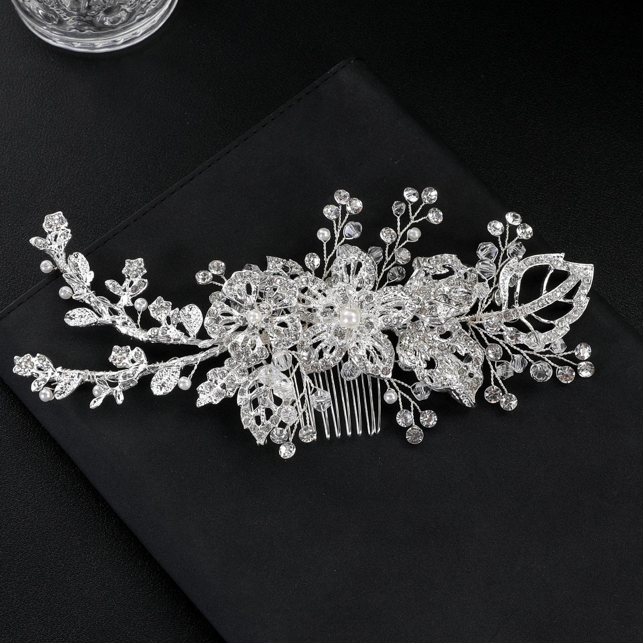 Tocado Nupcial Europeo y Americano, Peineta de Flores de Aleación de Alta Gama, Peineta para el Cabello con Diamantes Engastados a Mano, Accesorios para el Cabello de Boda, Venta al por Mayor de Fabricantes de Joyería