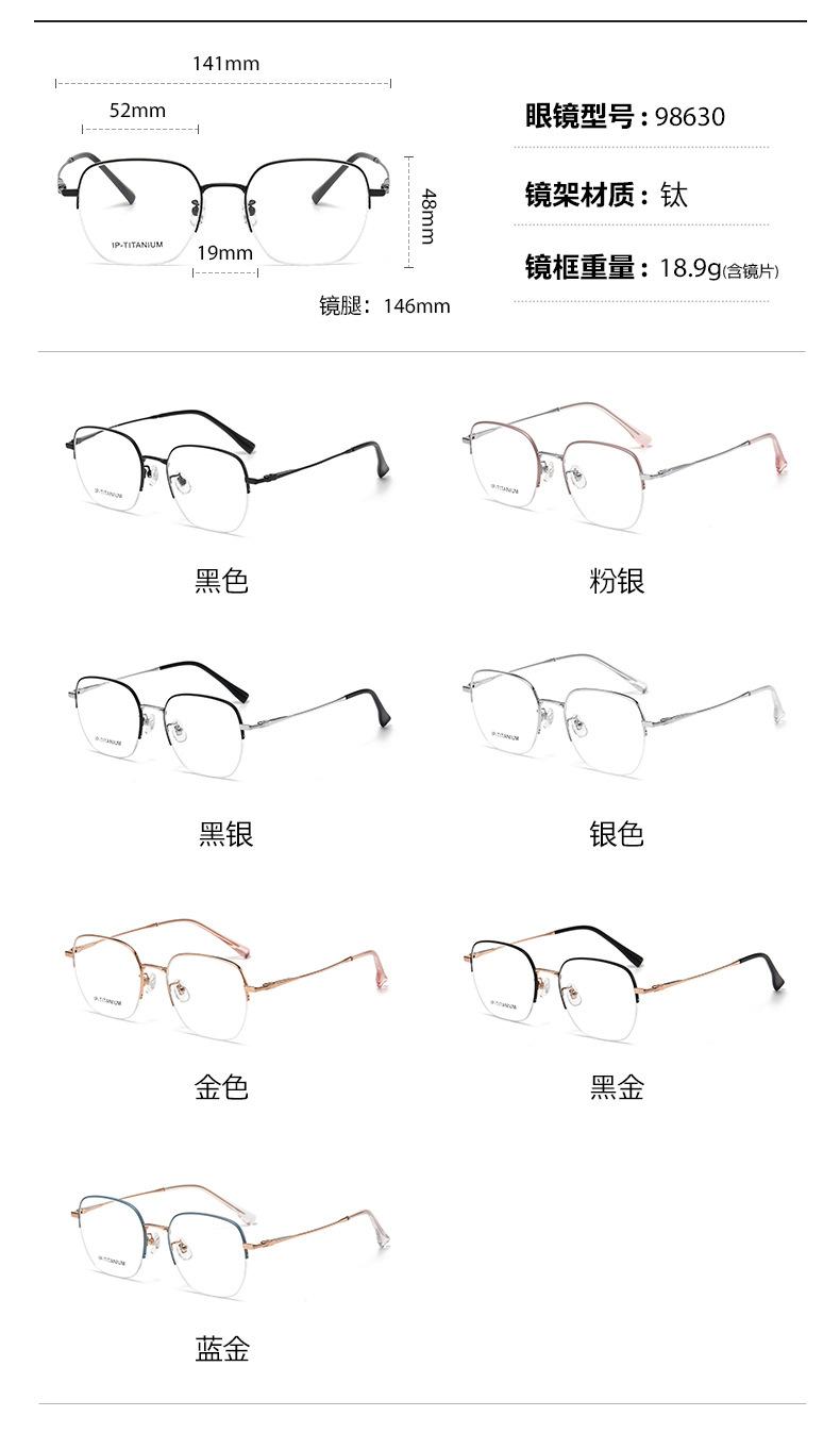 Lentes montura de titanio nuevo 98630 moda media montura 52 moda masculina personalidad temperamento femenino suave estudiante tendencia lentes