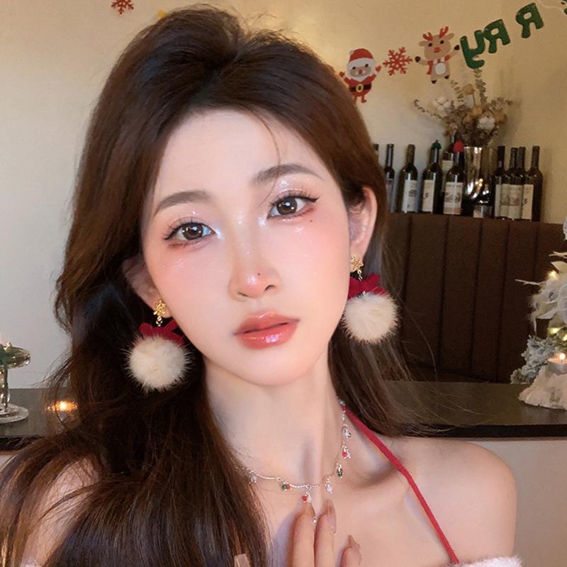 Compra Pendientes de borlas con bola de pelo y lazo con flocado de aguja plateada, elegantes y avanzados, con diseño de otoño e invierno para mujer. al por mayor en Joom.pro