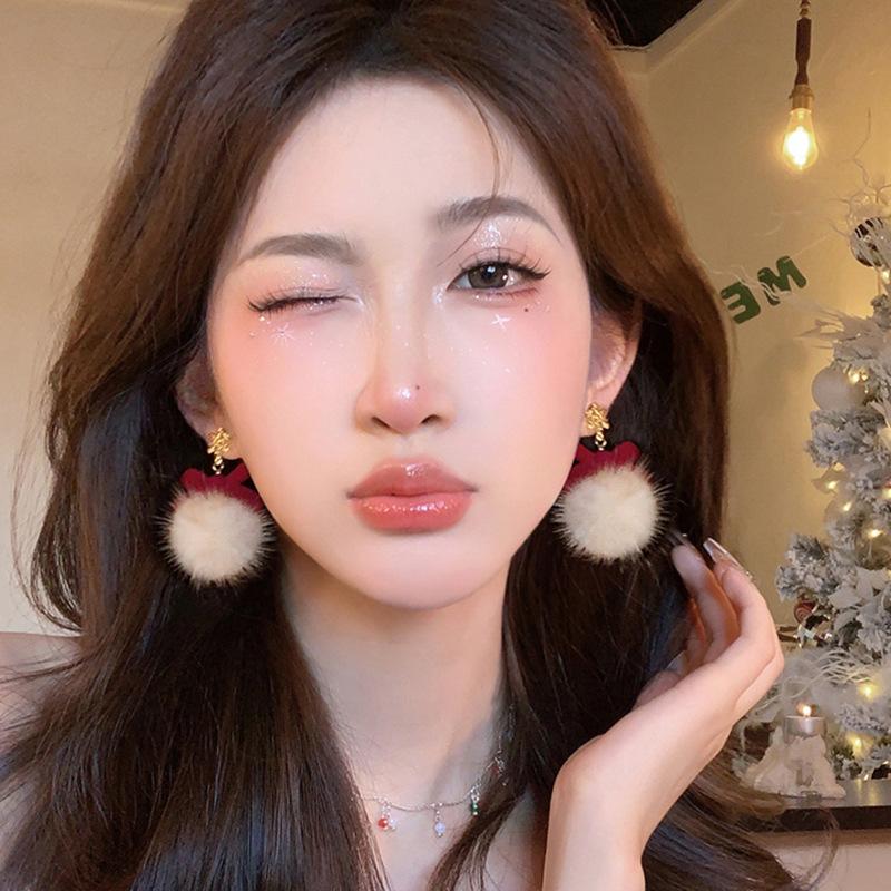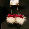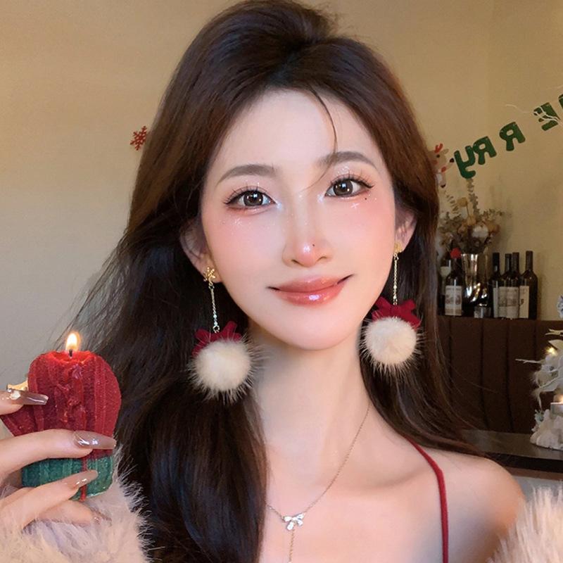 Pendientes de borlas con bola de pelo y lazo con flocado de aguja plateada, elegantes y avanzados, con diseño de otoño e invierno para mujer.