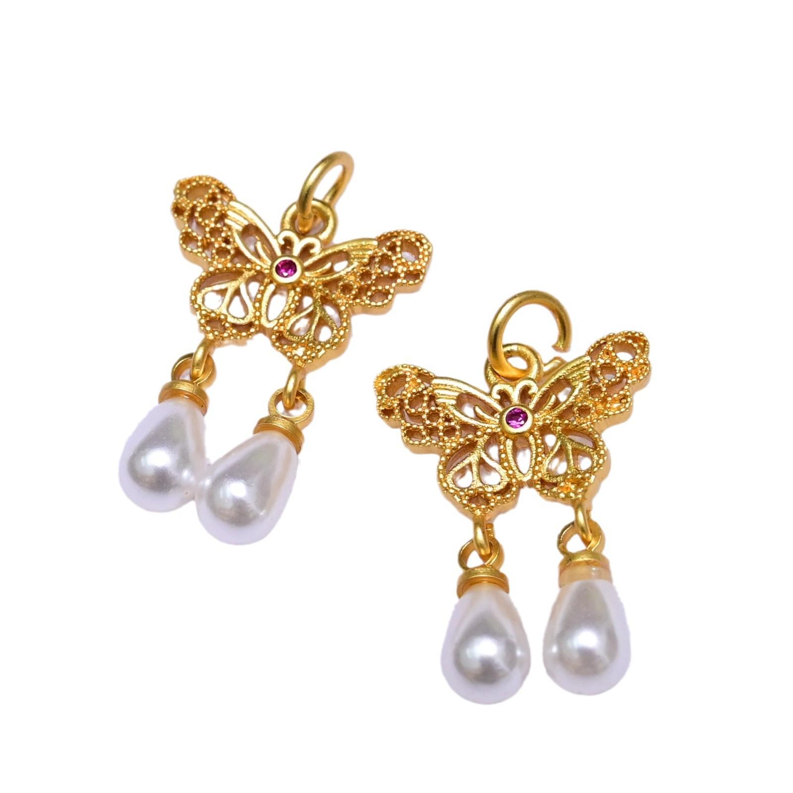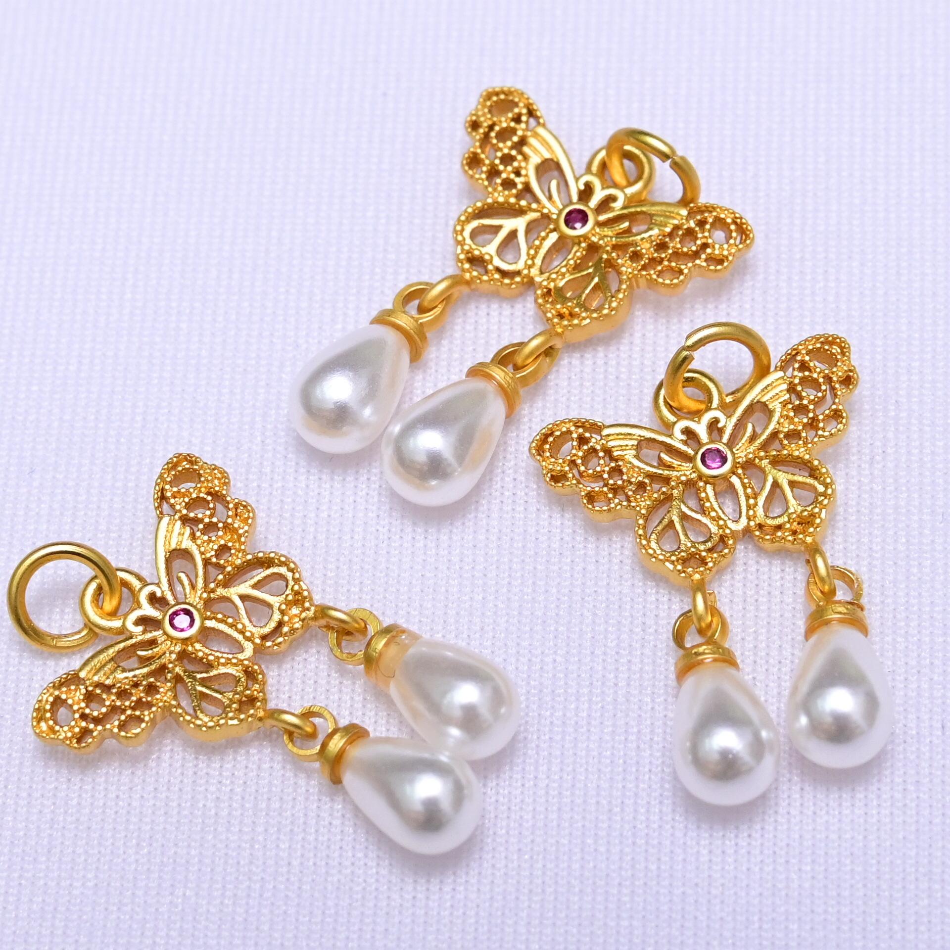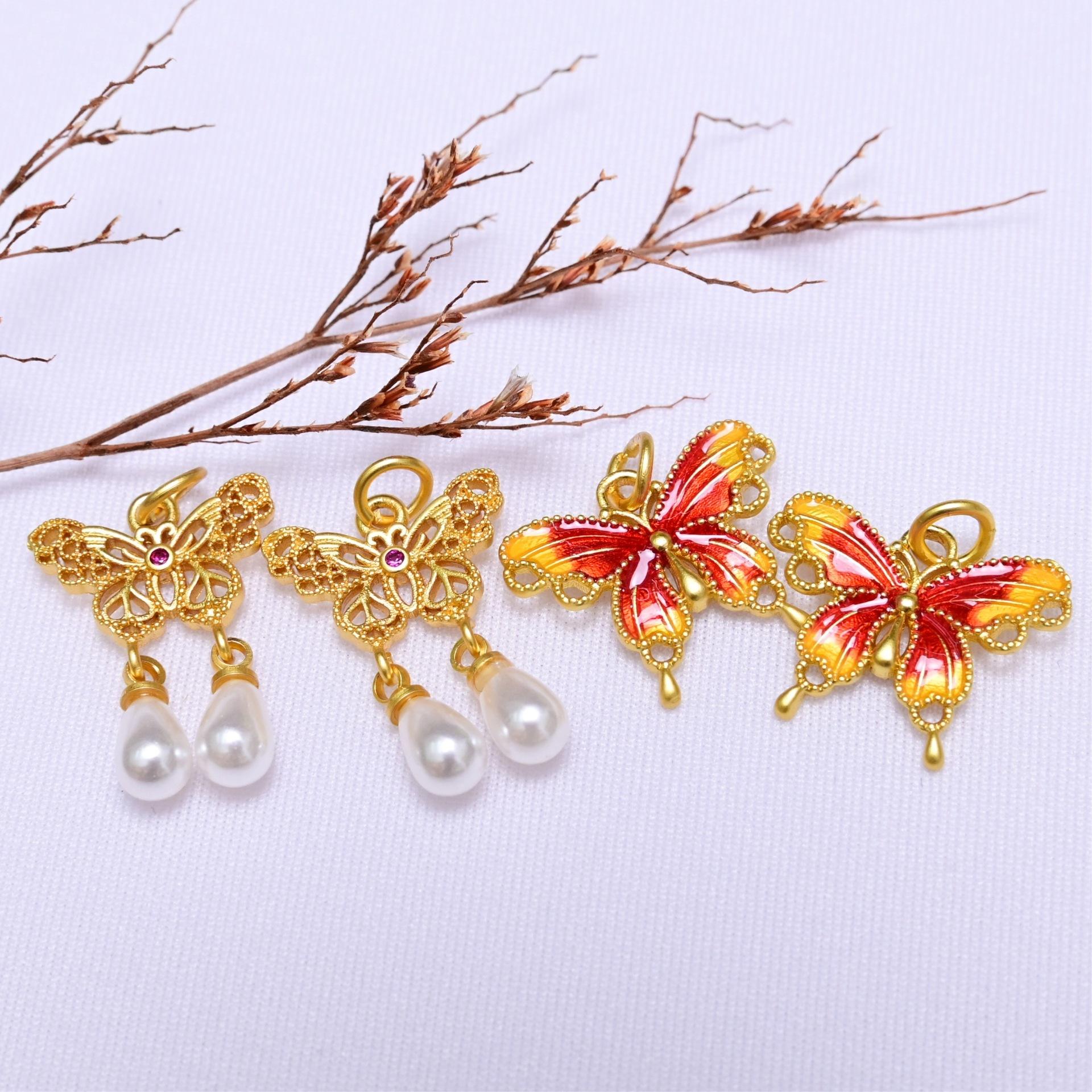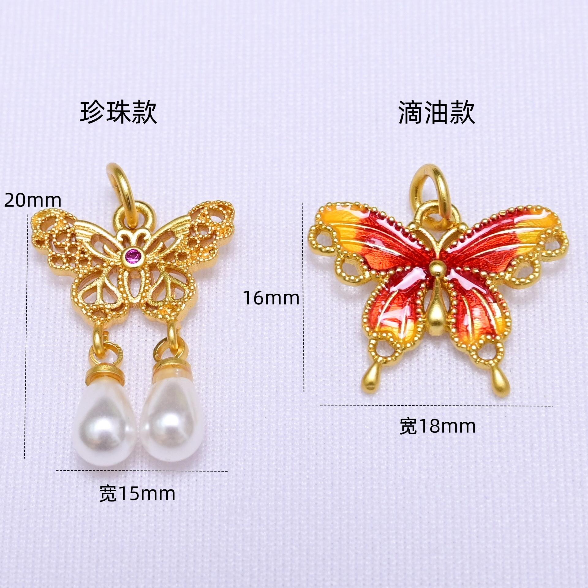 Accesorios de oro antiguo con preservación del color, colgante de gota de aceite de perla de mariposa, colgante de cuentas, pendientes de bricolaje, collar, colgante, joyería ~
