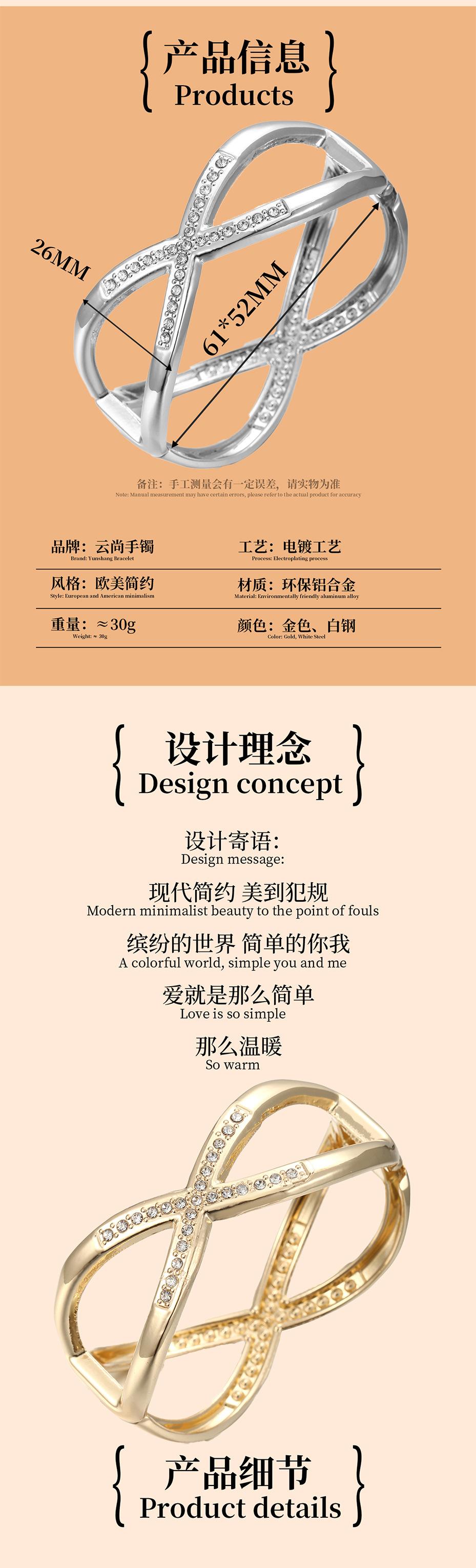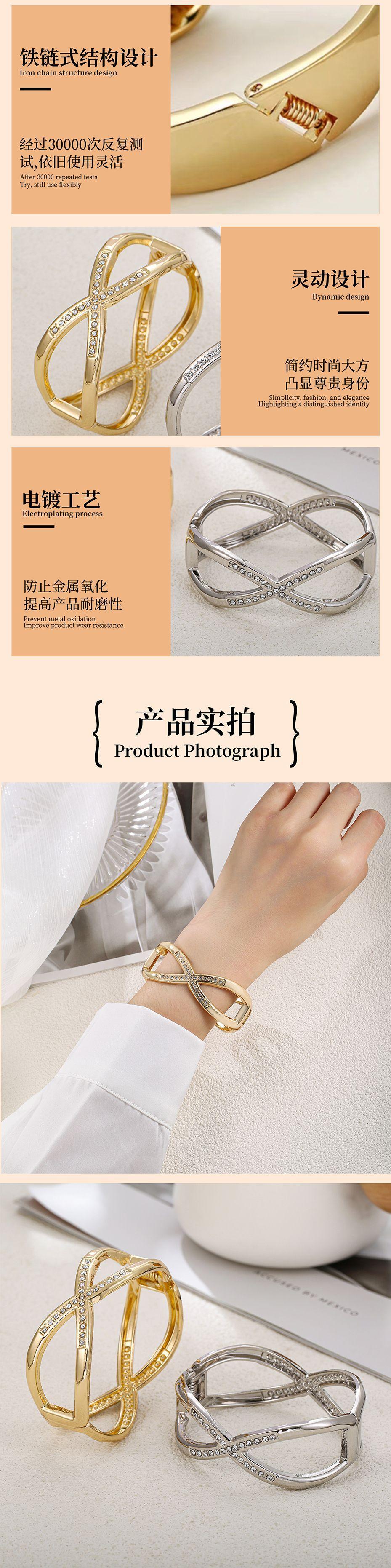 Pulsera Abierta Transfronteriza para Mujer Chapada en Oro Galvanizado Exagerada Estilo Coreano con Incrustaciones de Diamantes Brazaletes Anchos Calados Pulsera que No se Cae