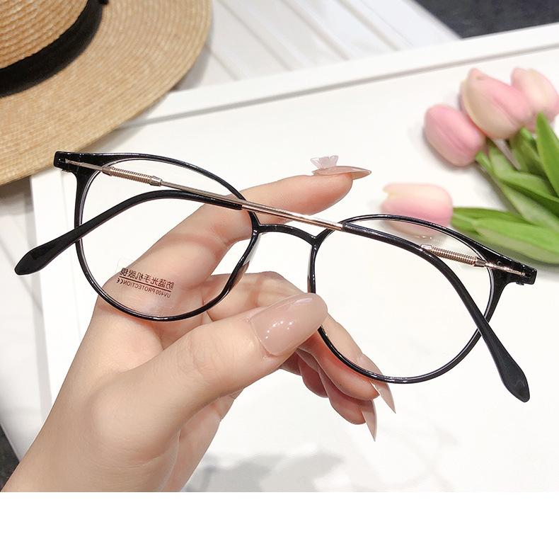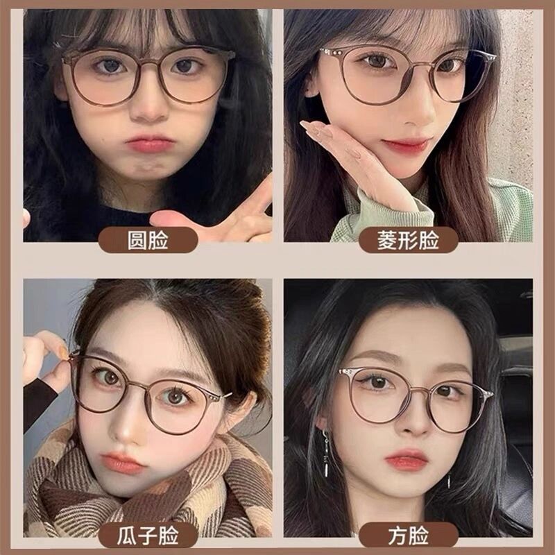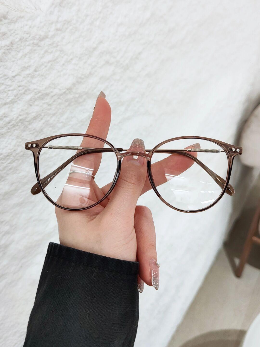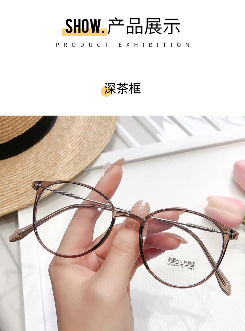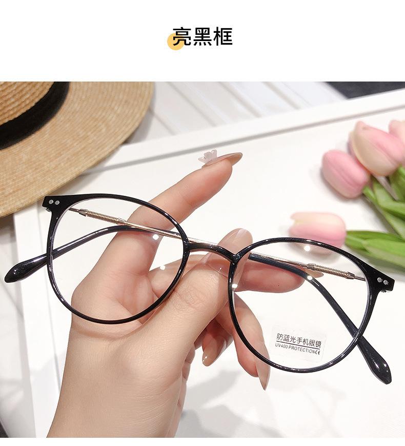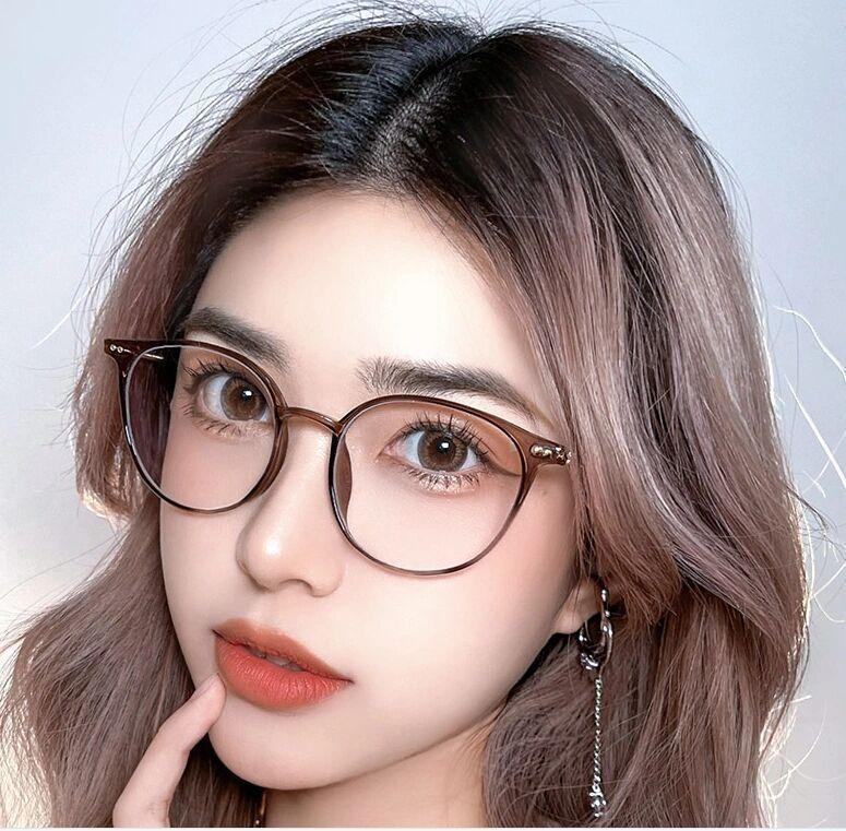 Anteojos lisos retro de montura redonda con luz anti-azul, té frío, estudiante femenina, montura para miopía, se pueden equipar con graduación, montura para anteojos lisos