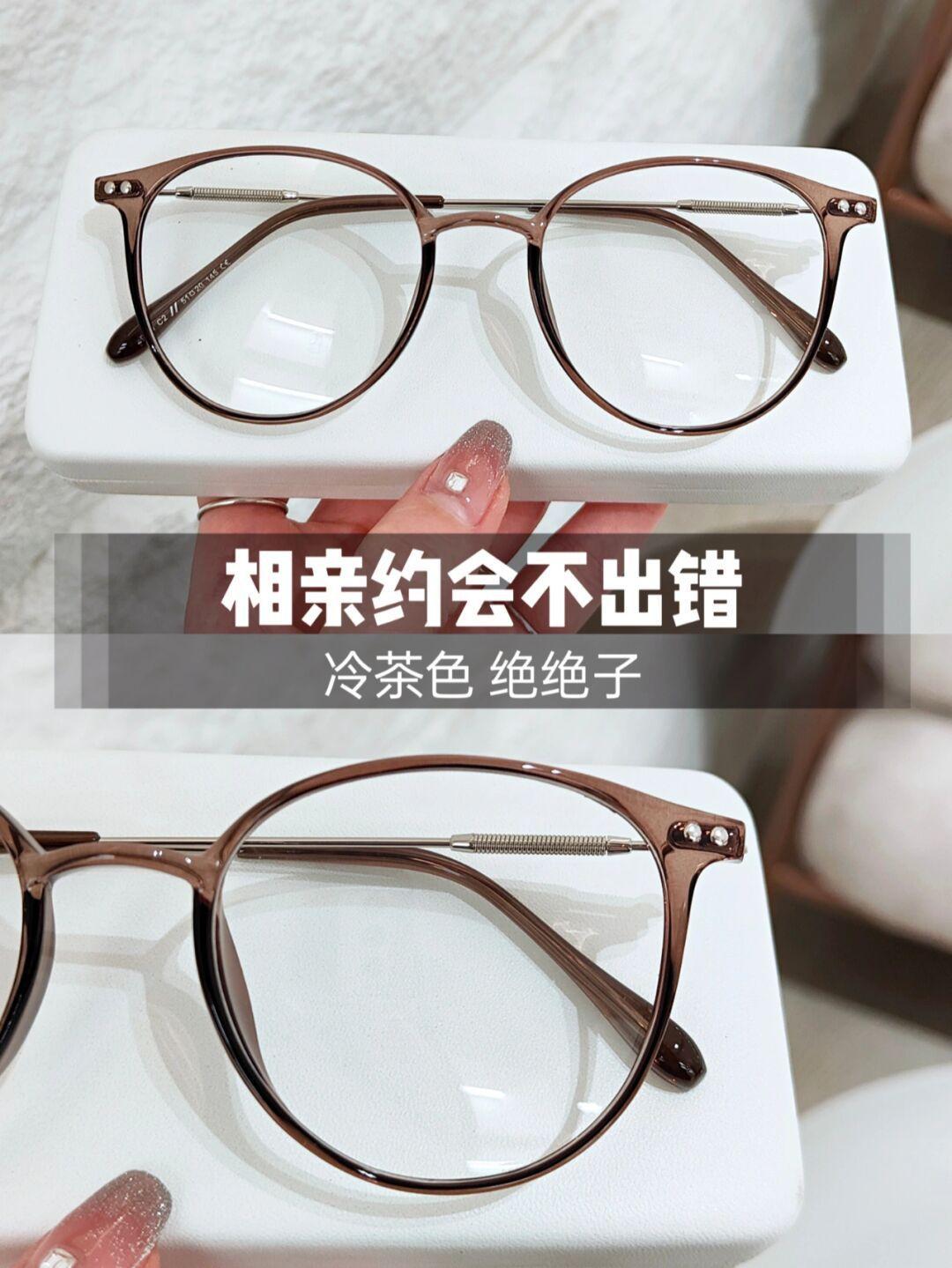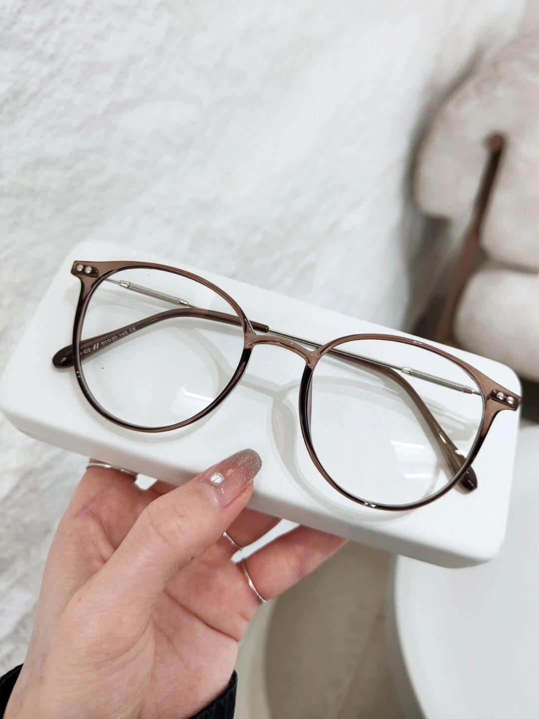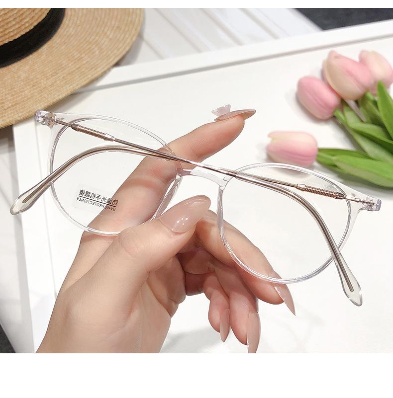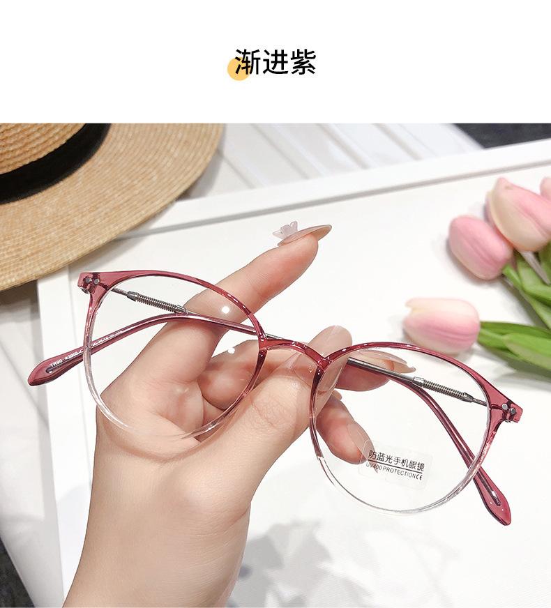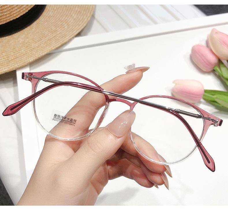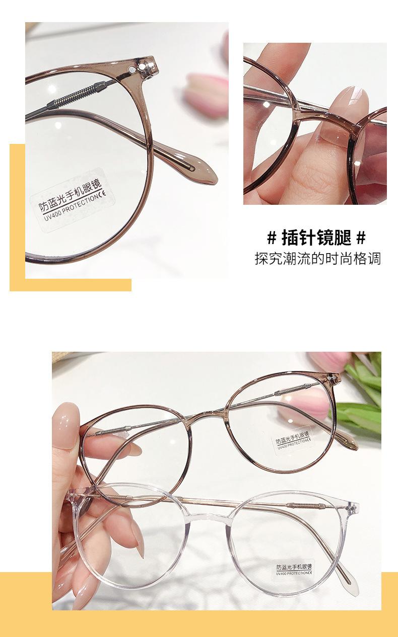 Anteojos lisos retro de montura redonda con luz anti-azul, té frío, estudiante femenina, montura para miopía, se pueden equipar con graduación, montura para anteojos lisos