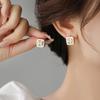 Pendientes elegantes de lujo de alta gama de Corea del Sur, nuevos y vintage con nicho de cinabrio, exquisita joyería para las orejas, pendientes cuadrados geométricos.