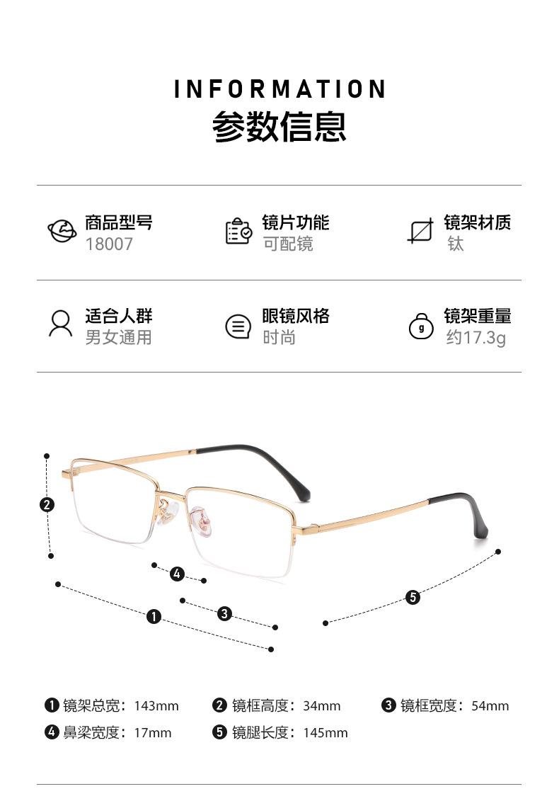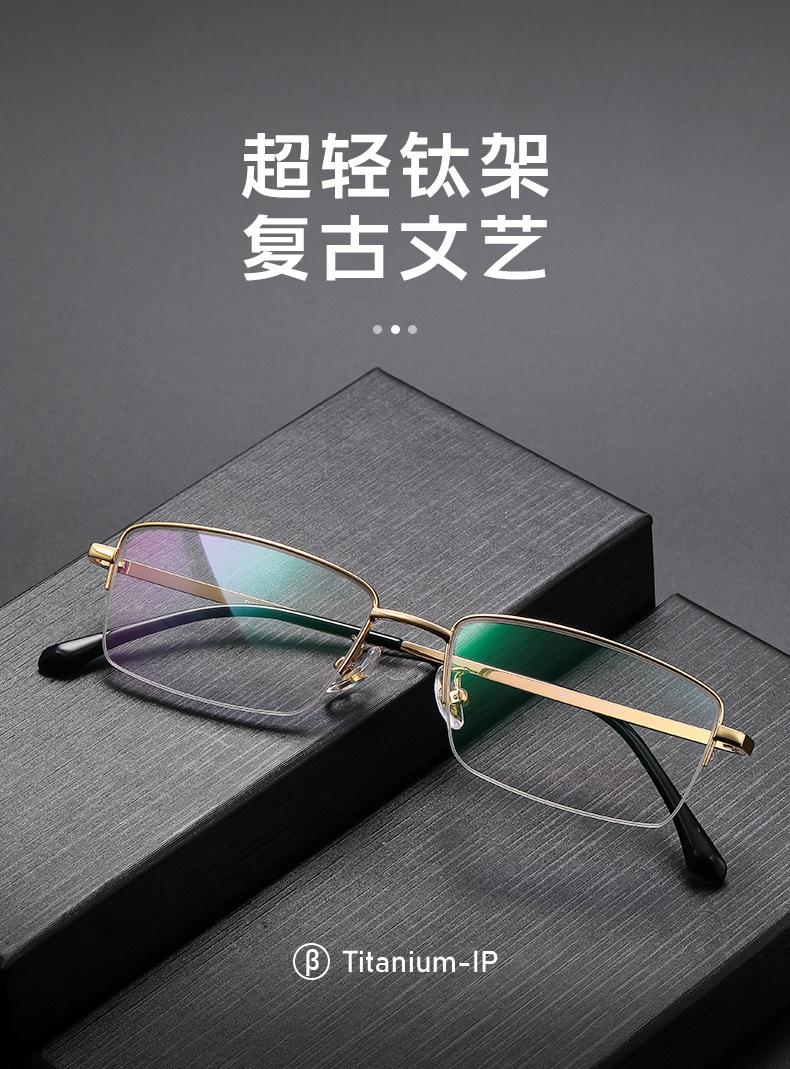 Compra Gafas de miopía ultraligeras de media montura para negocios, montura para hombre con luz azul, planas, retro, 18007, de aleación de titanio, venta al por mayor al por mayor en Joom.pro