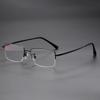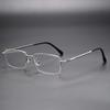 Gafas de miopía ultraligeras de media montura para negocios, montura para hombre con luz azul, planas, retro, 18007, de aleación de titanio, venta al por mayor