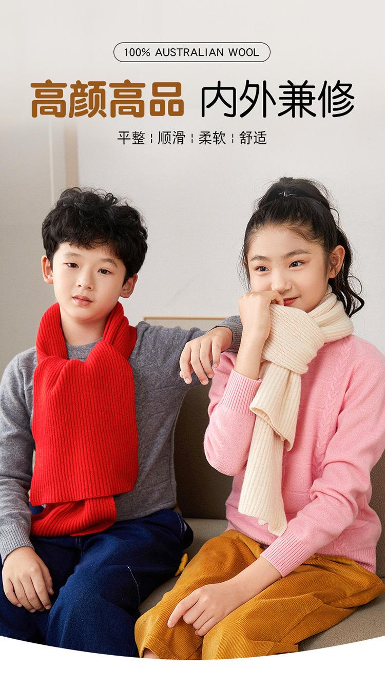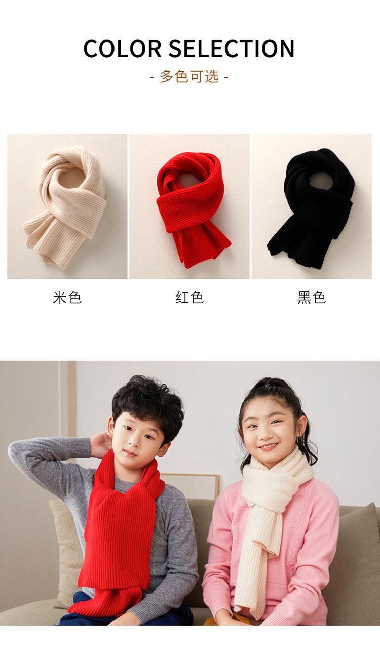 Otoño e invierno nuevo 100% lana tejida bufanda gruesa para niños color sólido lana combinable cálida bufanda para el cuello rojo de Año Nuevo