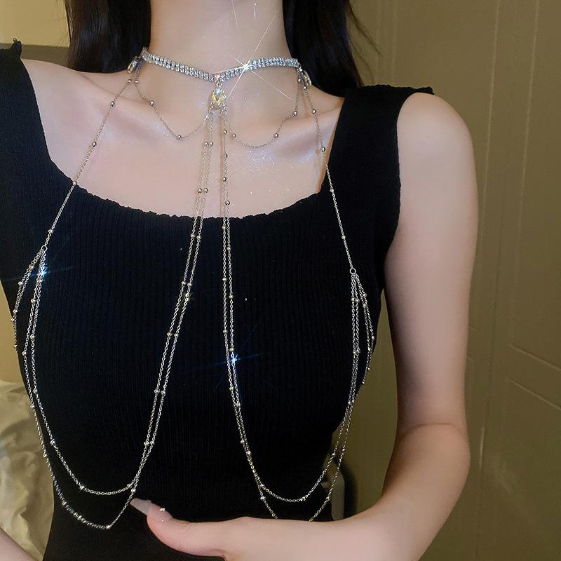 Cadena de Pecho Geométrica de Circonita Moda Metálica Europea y Americana Cadena Corporal Personalizada Nicho Versátil Pecho para Mujer