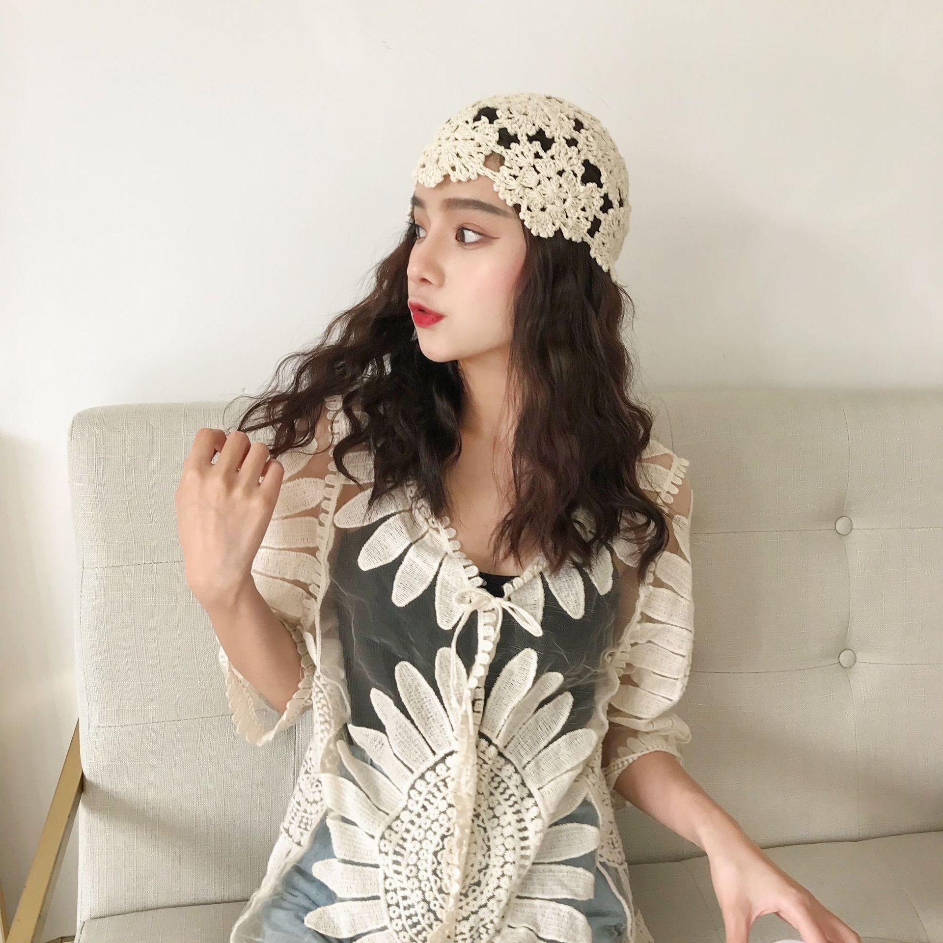 Nueva gorra fina hueca con capucha de algodón tejida a mano para primavera y otoño, transpirable, de punto, para mujer, con capucha, gorra de toalla hueca, gorra con puntera, moderna