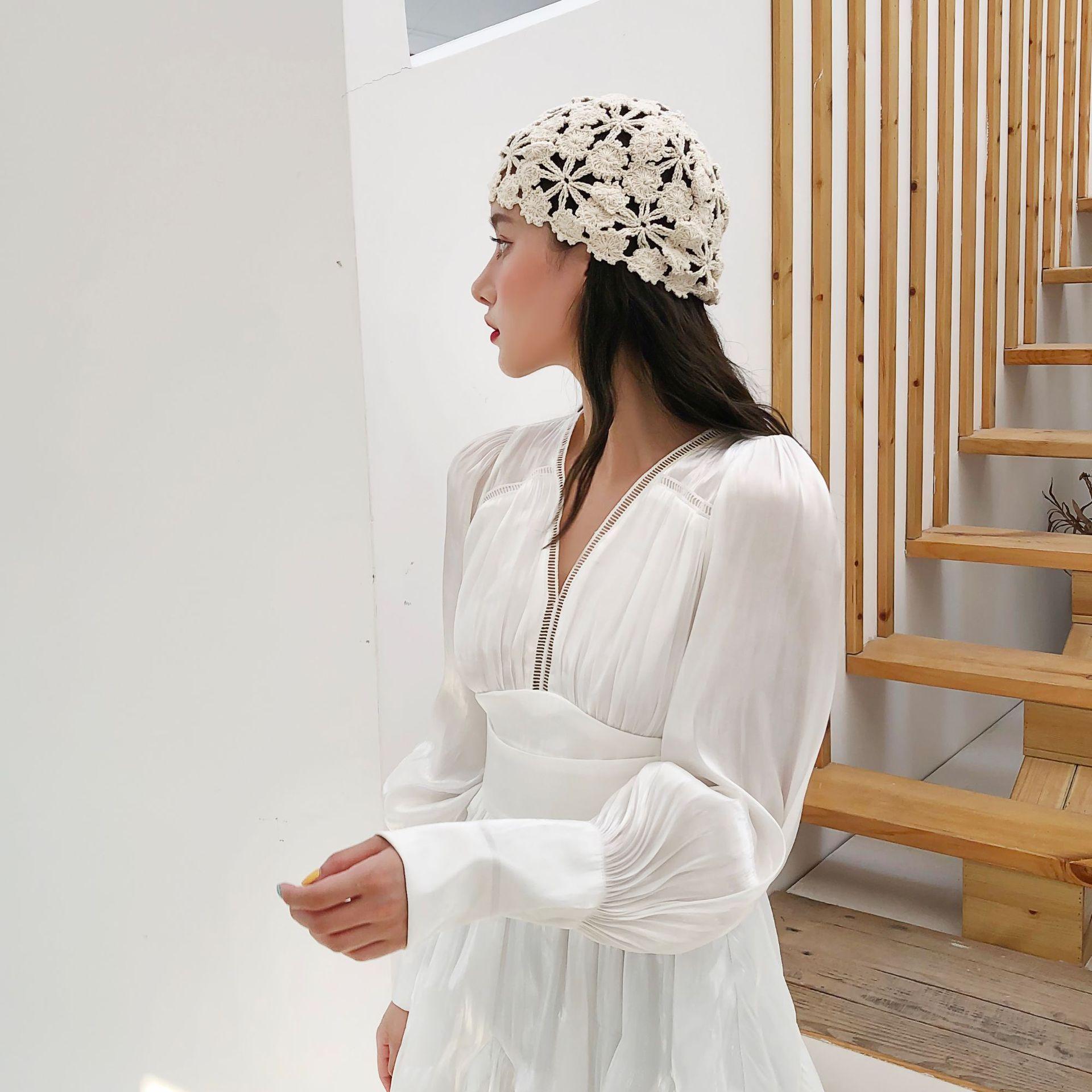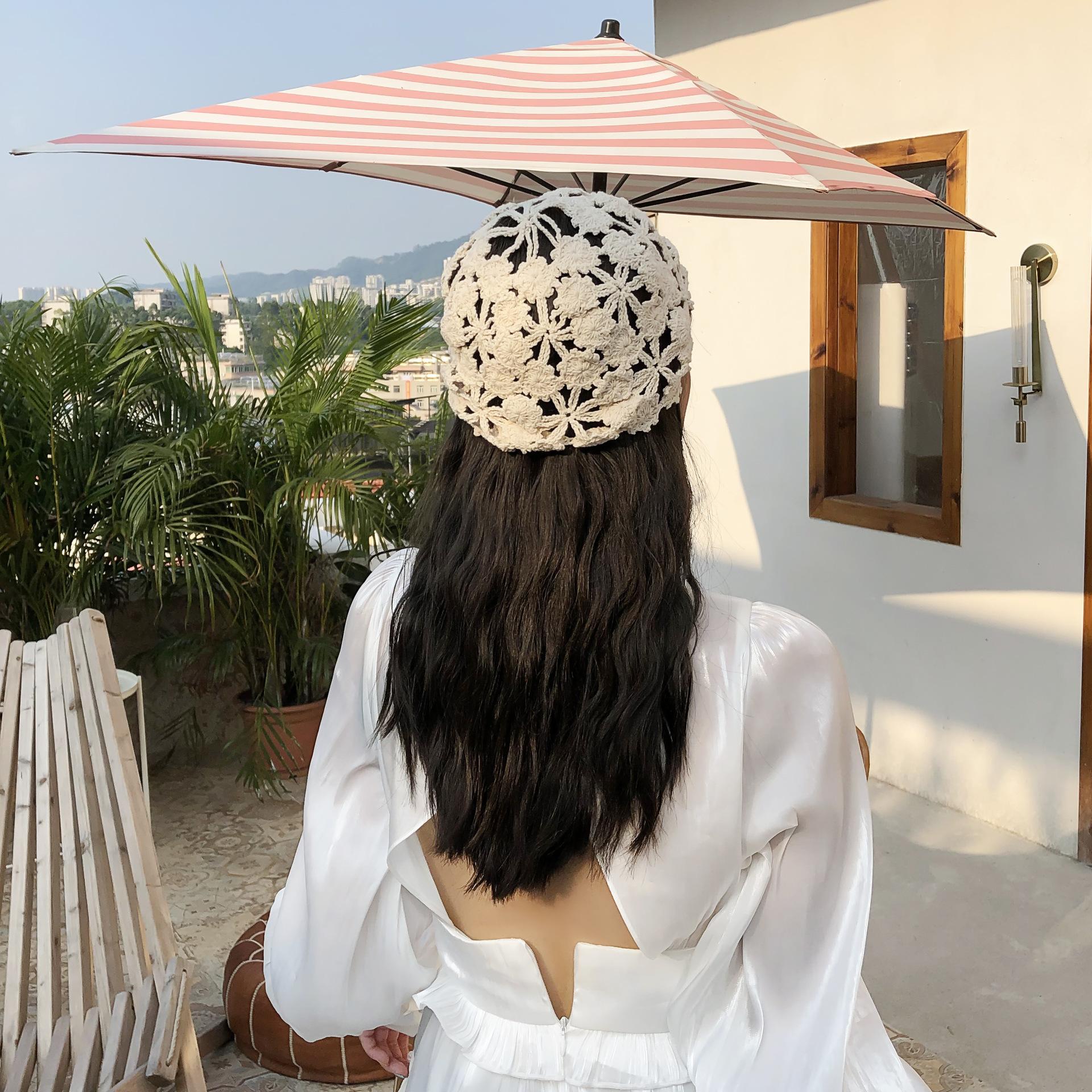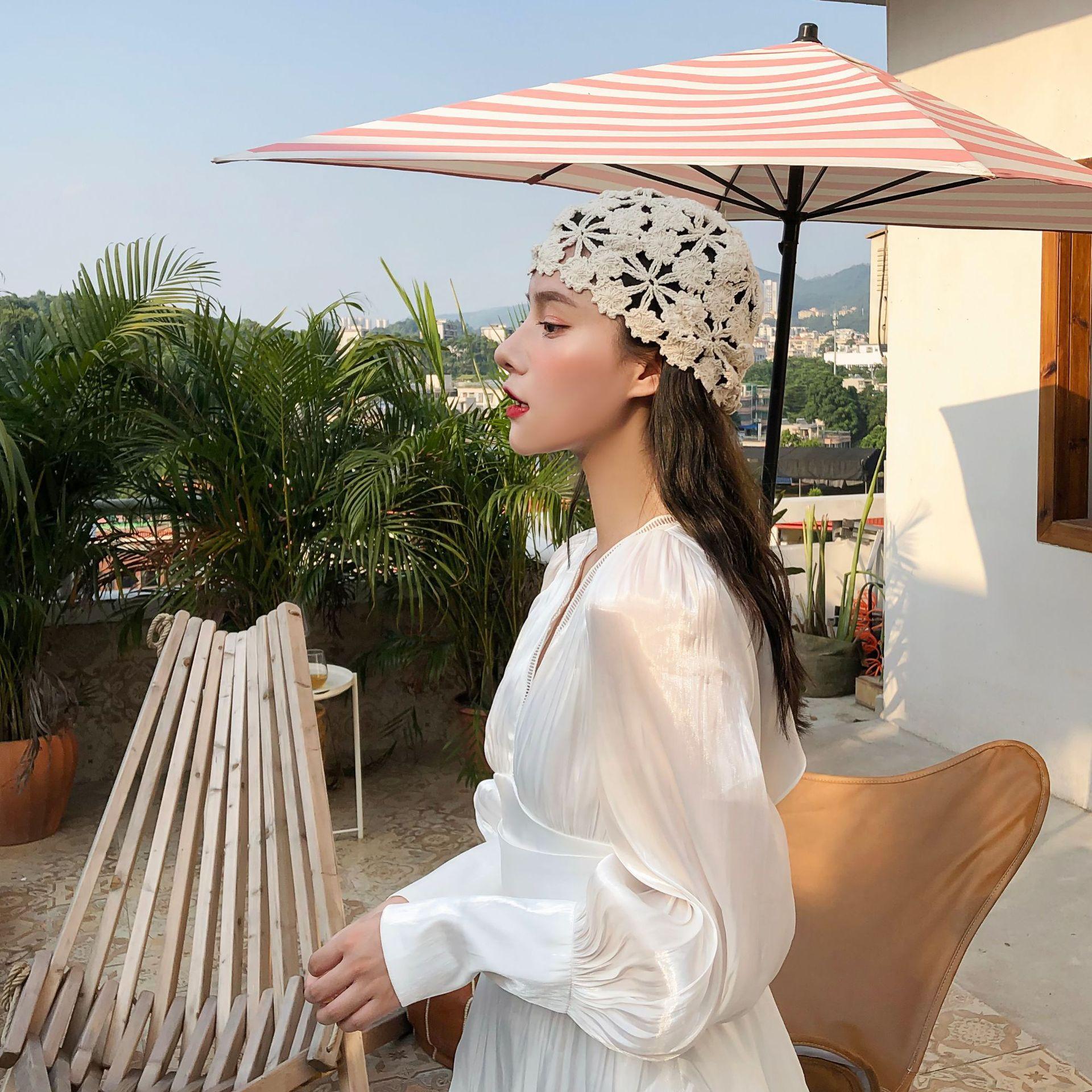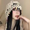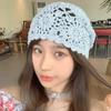 Gorro turbante transpirable con encaje de primavera y verano con flores tejidas a mano, gorro de punto de ganchillo para niños