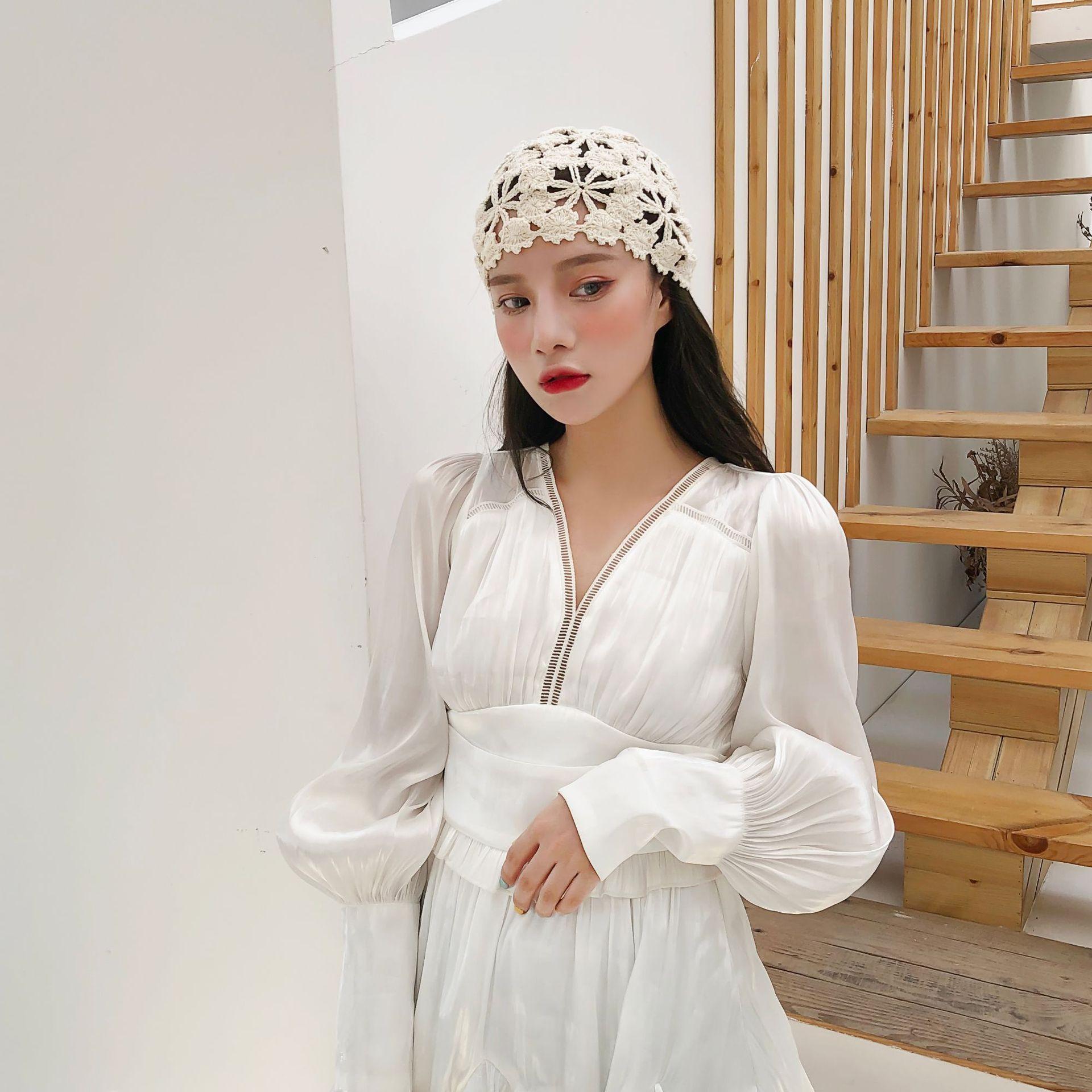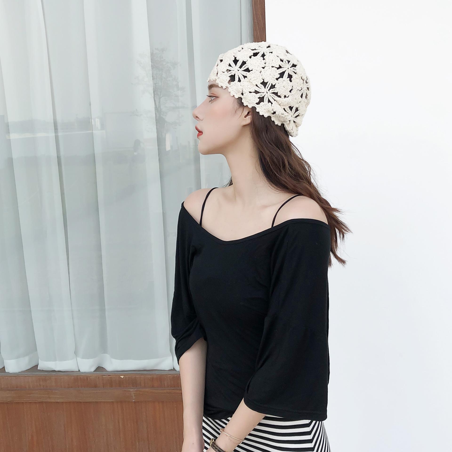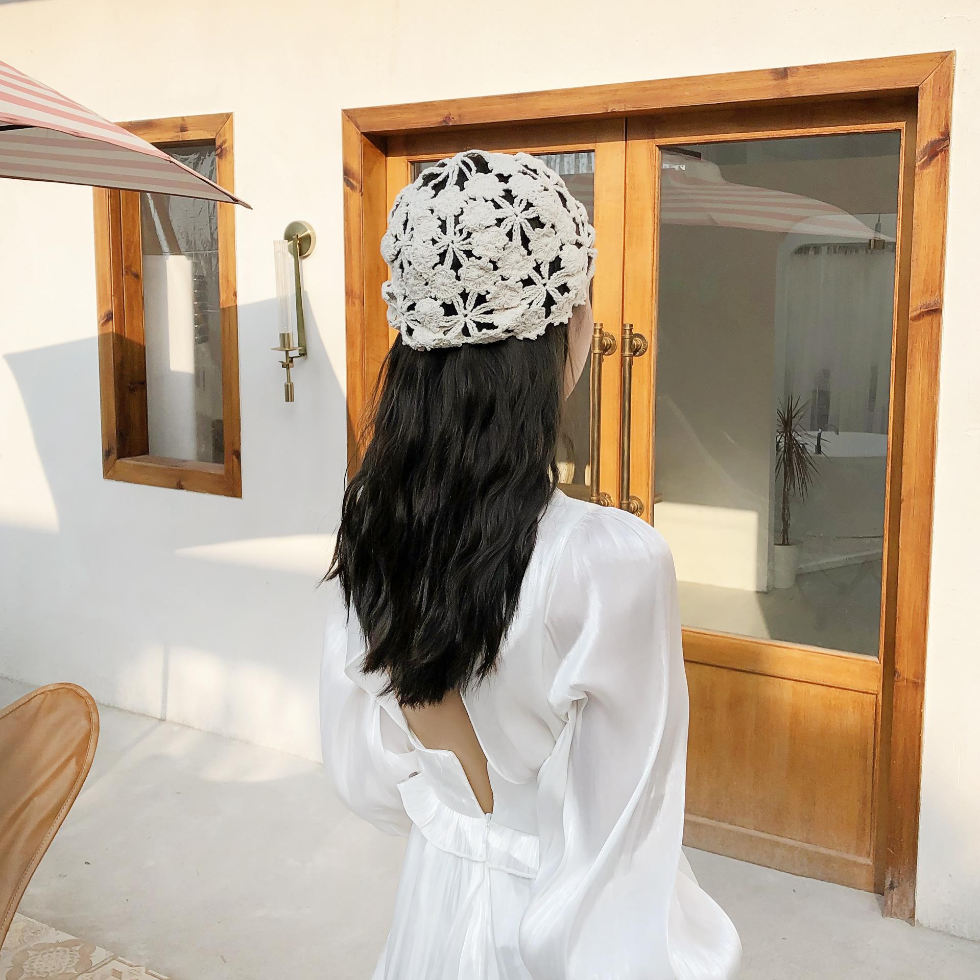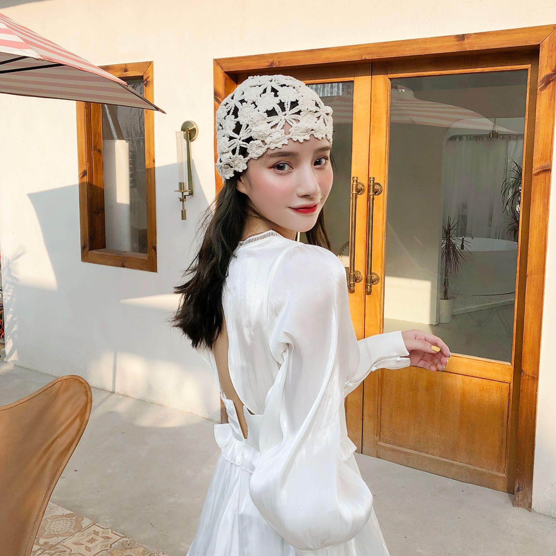 Gorro turbante transpirable con encaje de primavera y verano con flores tejidas a mano, gorro de punto de ganchillo para niños