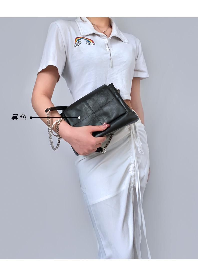 Bolso de Mujer 2022 Nuevo Cuero Vacuno Capa Superior Cera de Aceite Moda Simple Bolso Cuadrado Pequeño de Hombro Cruzado Nicho Bolso de Mujer