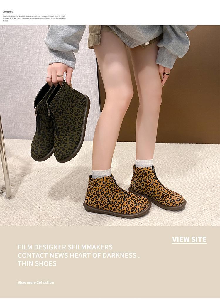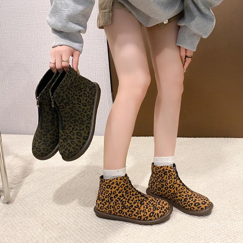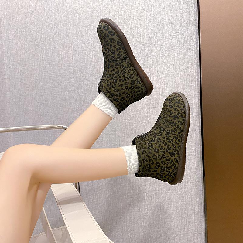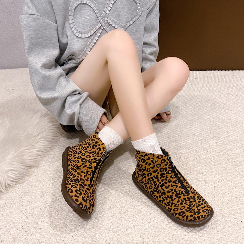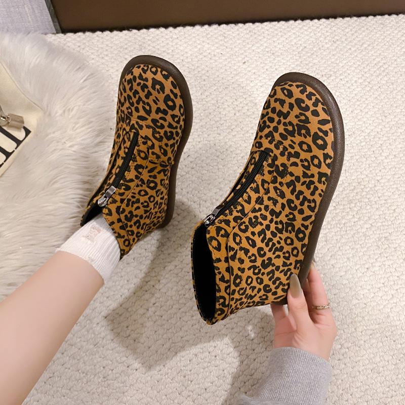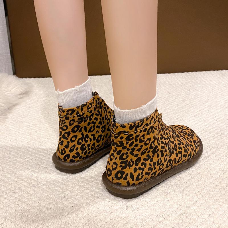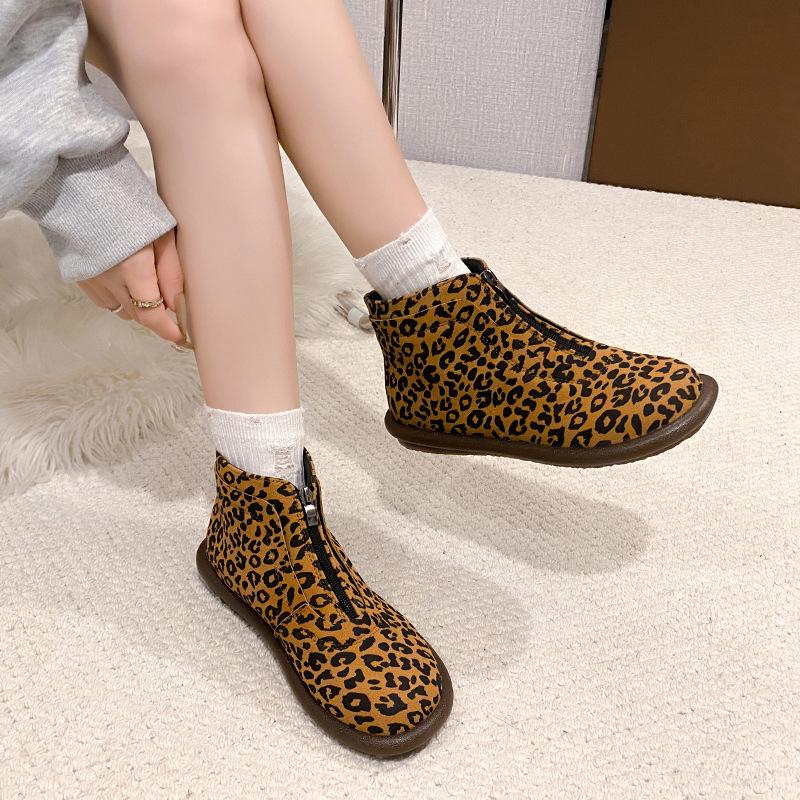 Comercio exterior talla grande botas de nieve para mujer 2024 otoño e invierno nueva moda cremallera frontal punta redonda estampado de leopardo suela plana botas de mujer al por mayor