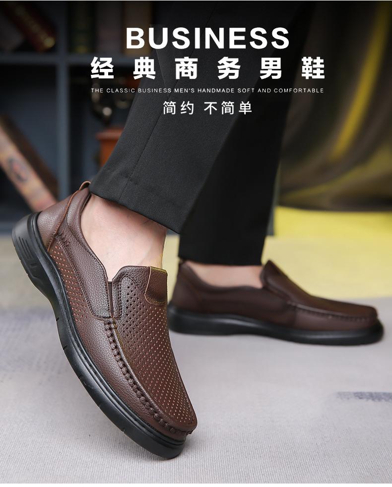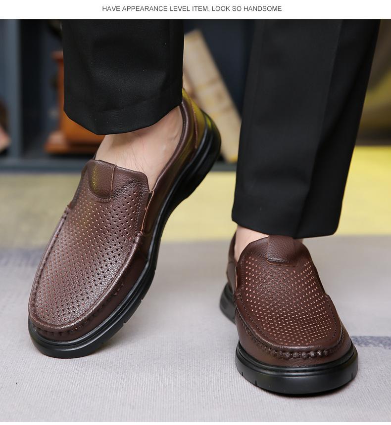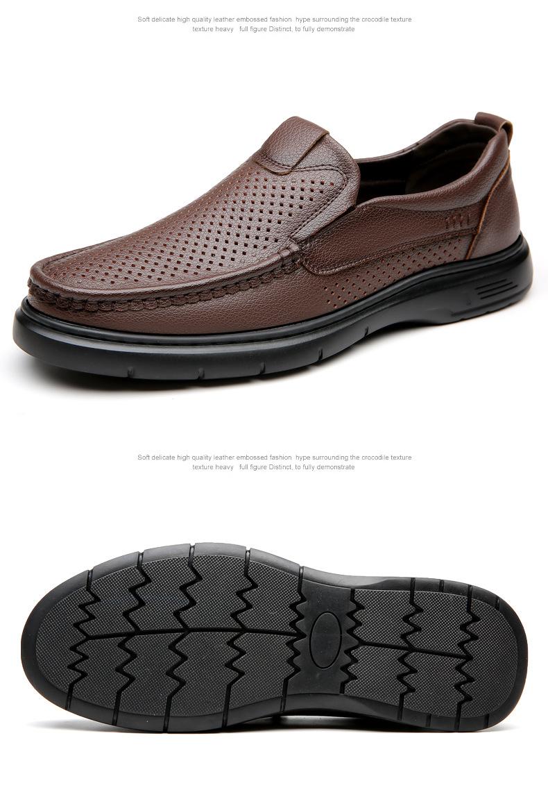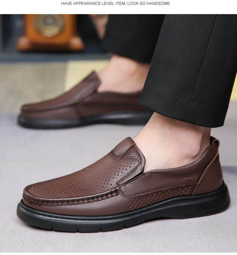 Zapatos de Verano Huecos de Cuero para Hombre, Sandalias de Cuero Transpirables Business Casual, Suelas Suaves, Zapatos de Papá para Hombre de Mediana Edad