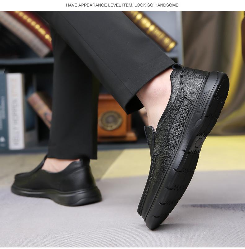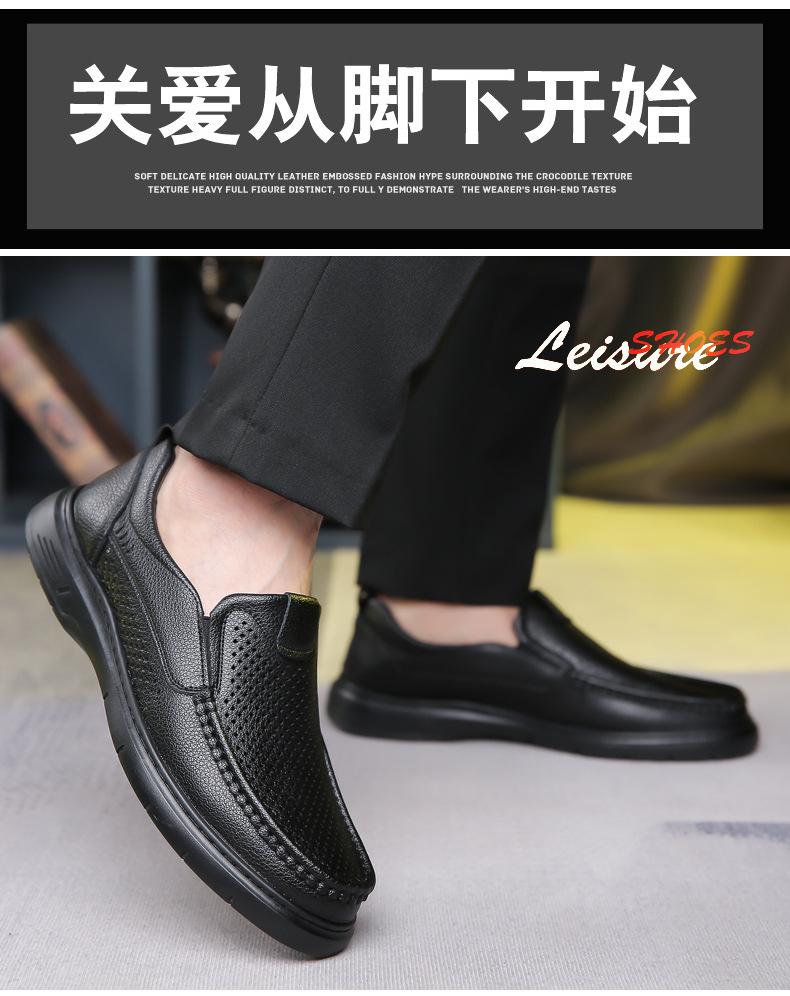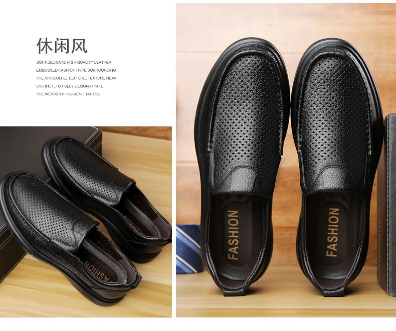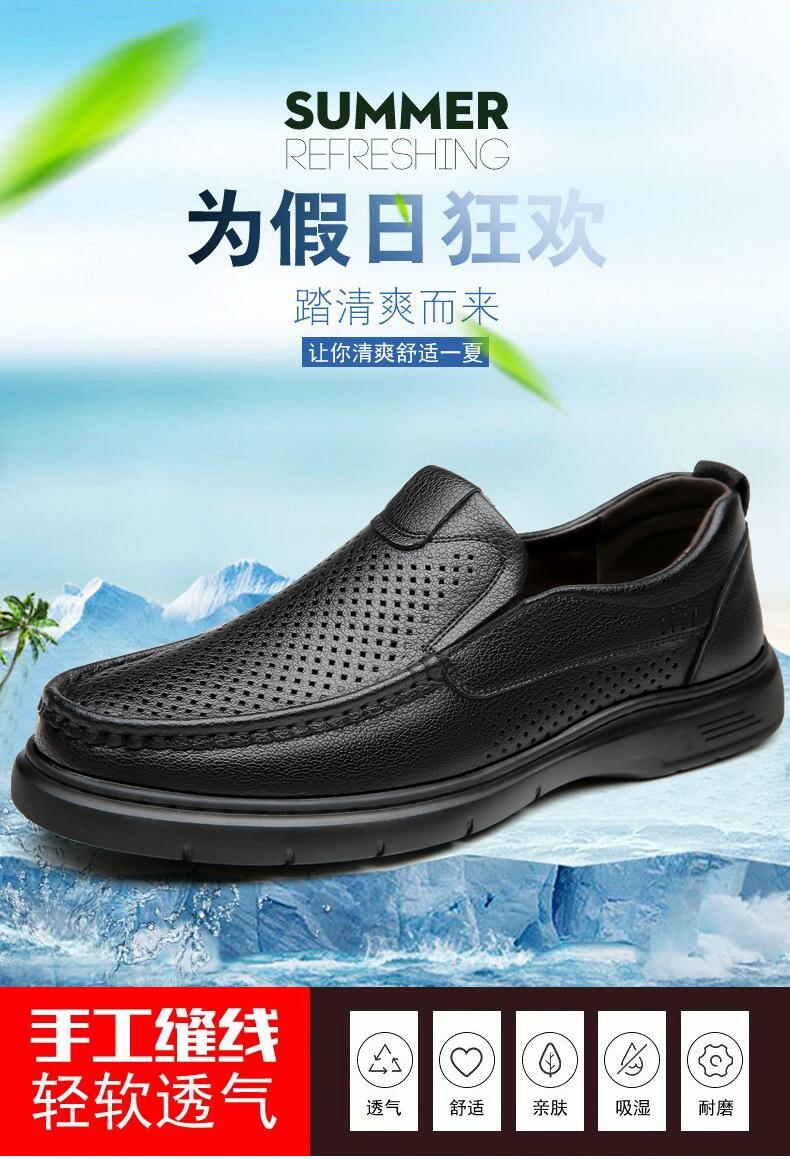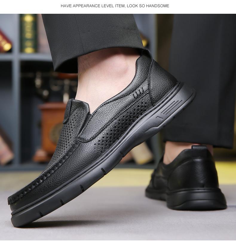 Zapatos de Verano Huecos de Cuero para Hombre, Sandalias de Cuero Transpirables Business Casual, Suelas Suaves, Zapatos de Papá para Hombre de Mediana Edad