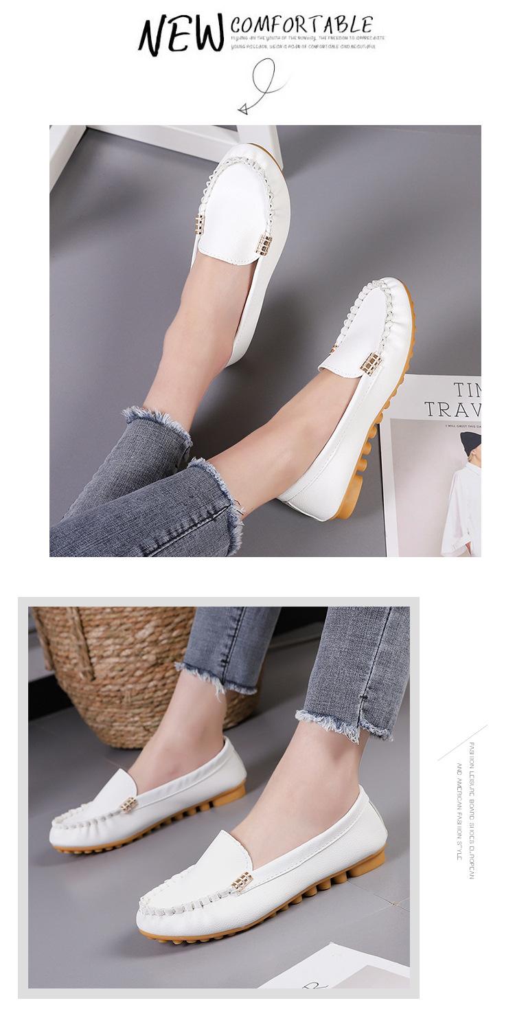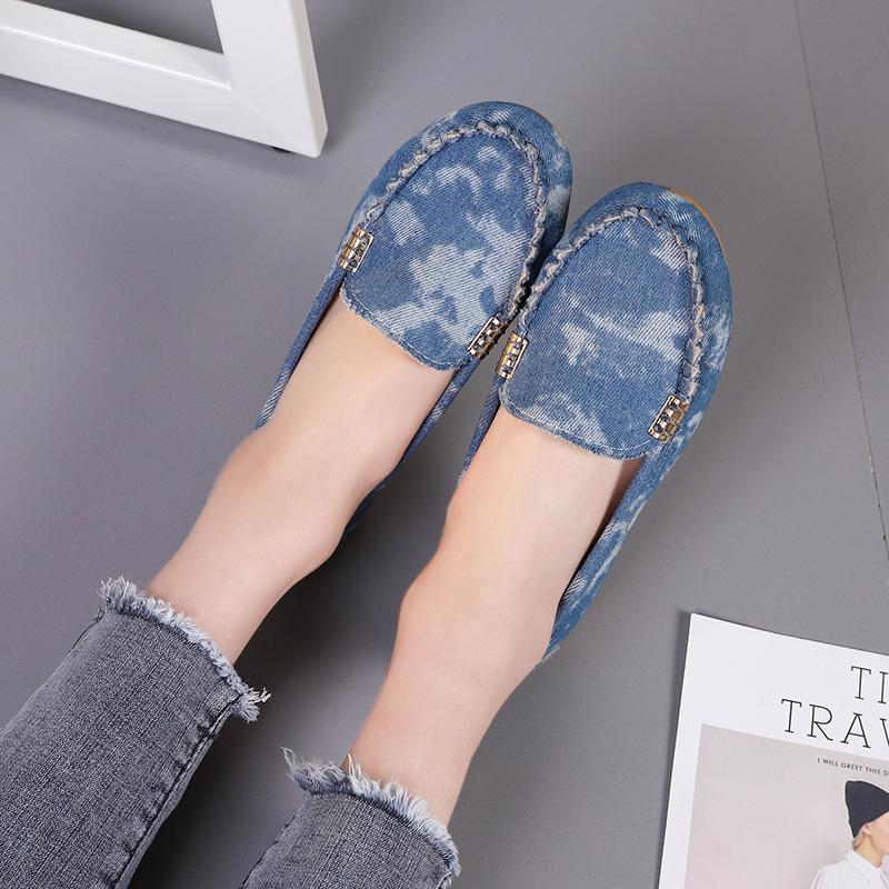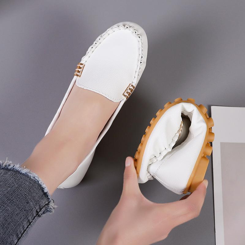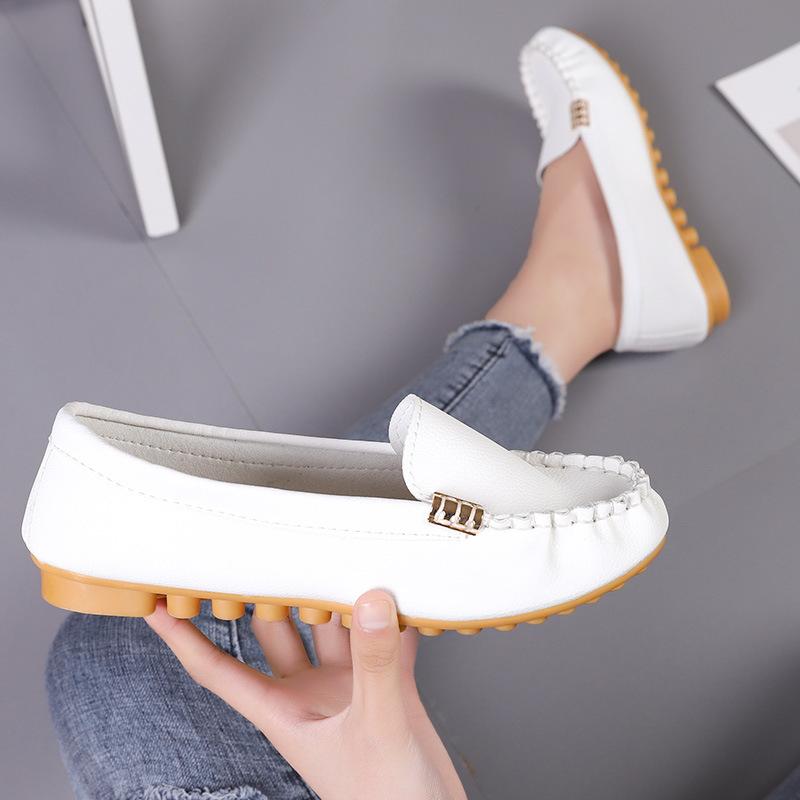 Comercio exterior talla grande primavera y otoño zapatos tipo mocasín 2024 nuevos punta redonda tacón plano suela blanda poco profundos hebilla metálica zapatos casuales para mujer