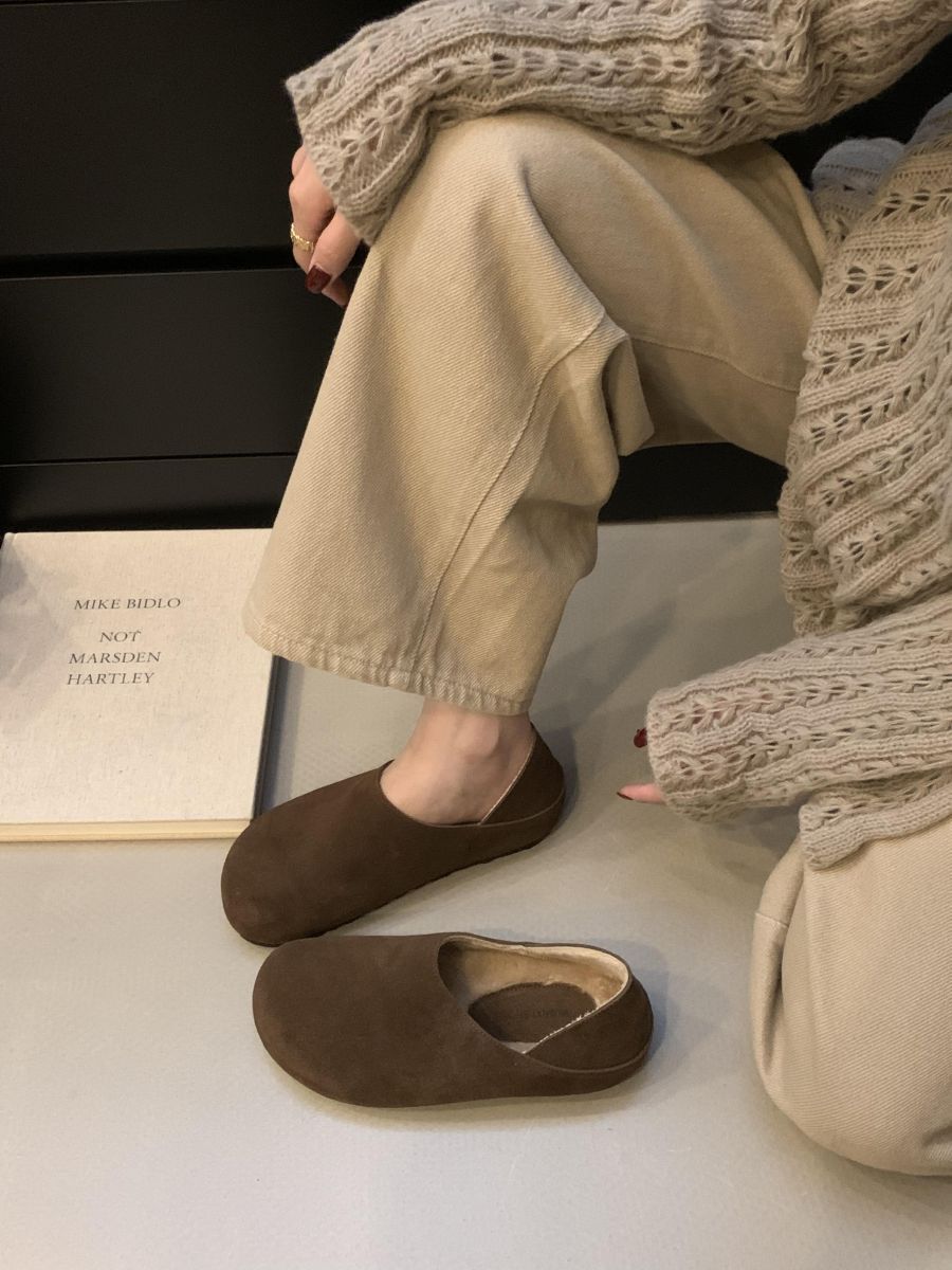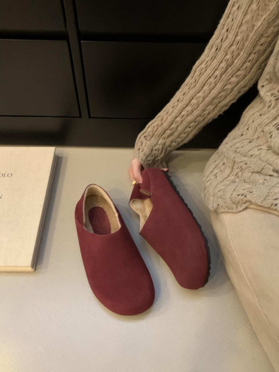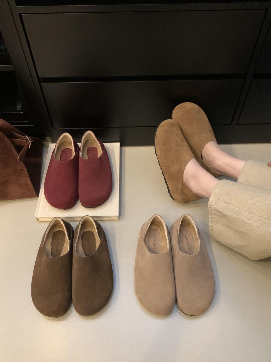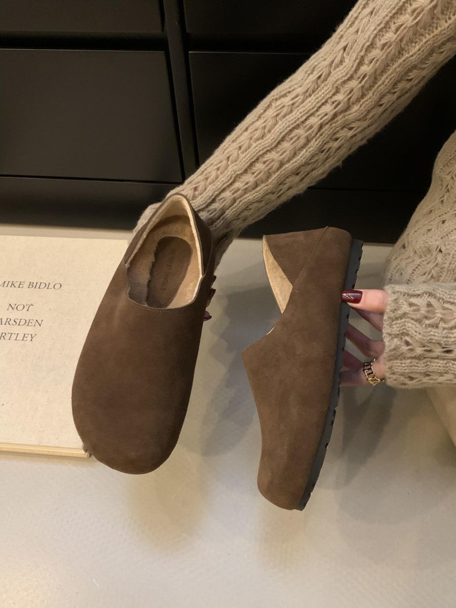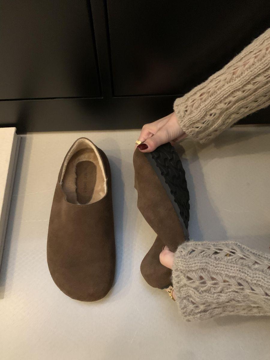 Mocasines de Felpa para Mujer Birkenstock Otoño 2025 Nuevos Puntera Grande Lindo Retro Zapatos Slip-On Zapatos Individuales