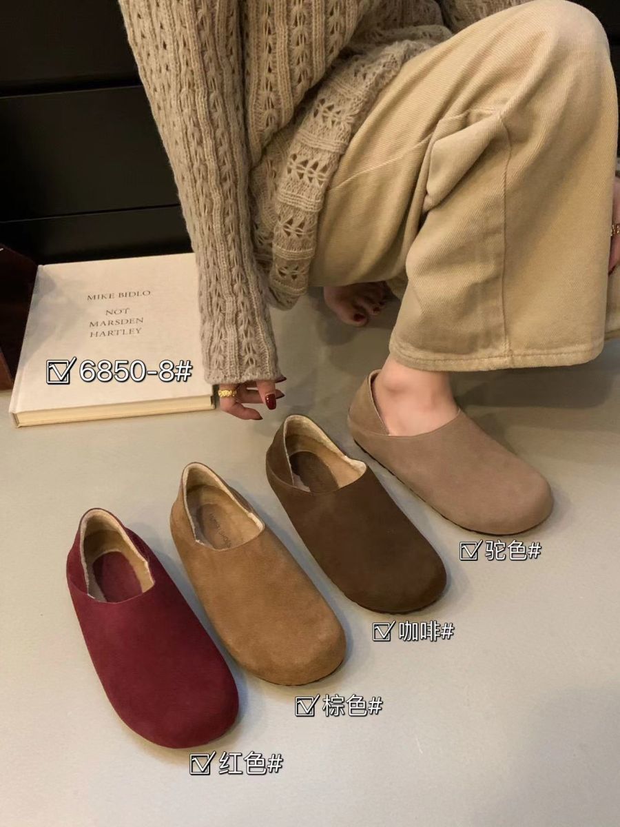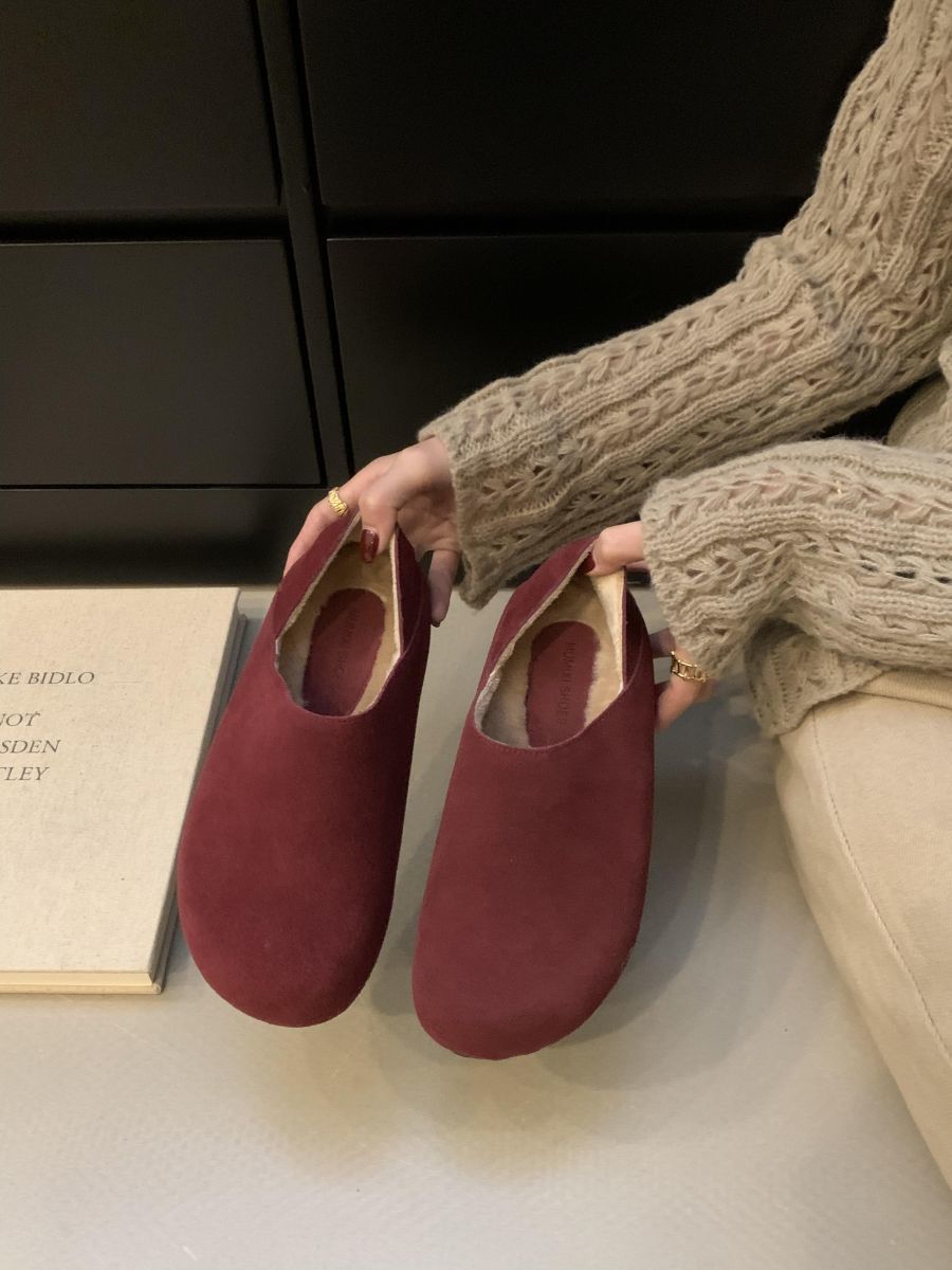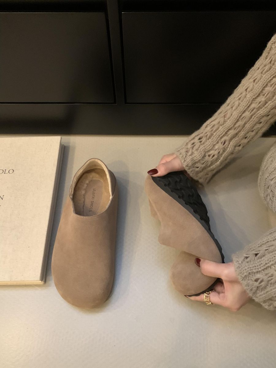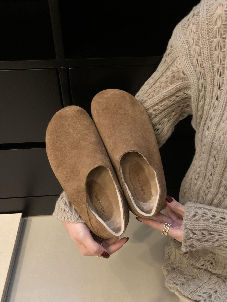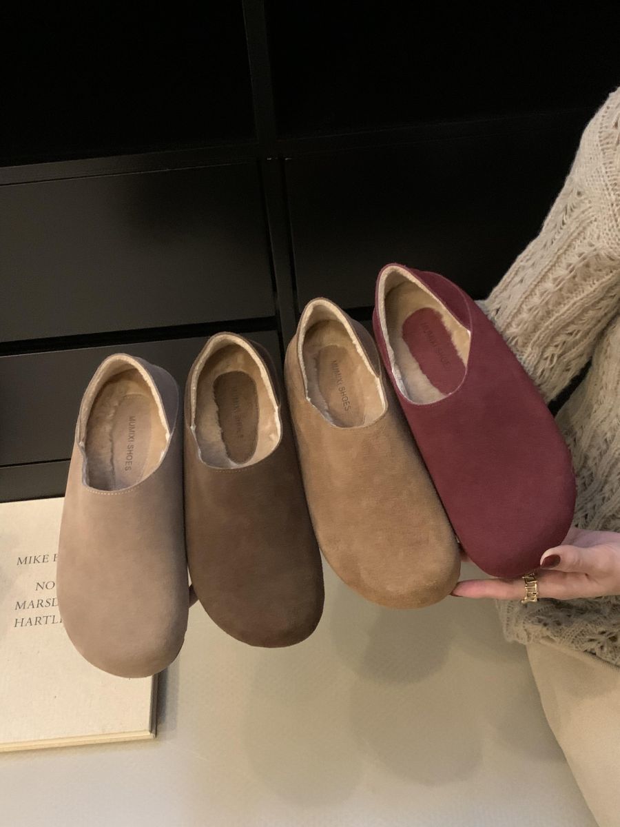 Mocasines de Felpa para Mujer Birkenstock Otoño 2025 Nuevos Puntera Grande Lindo Retro Zapatos Slip-On Zapatos Individuales
