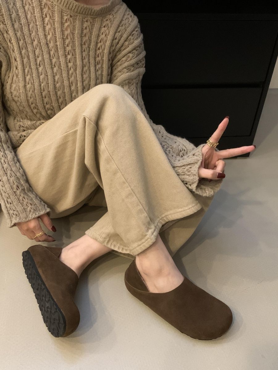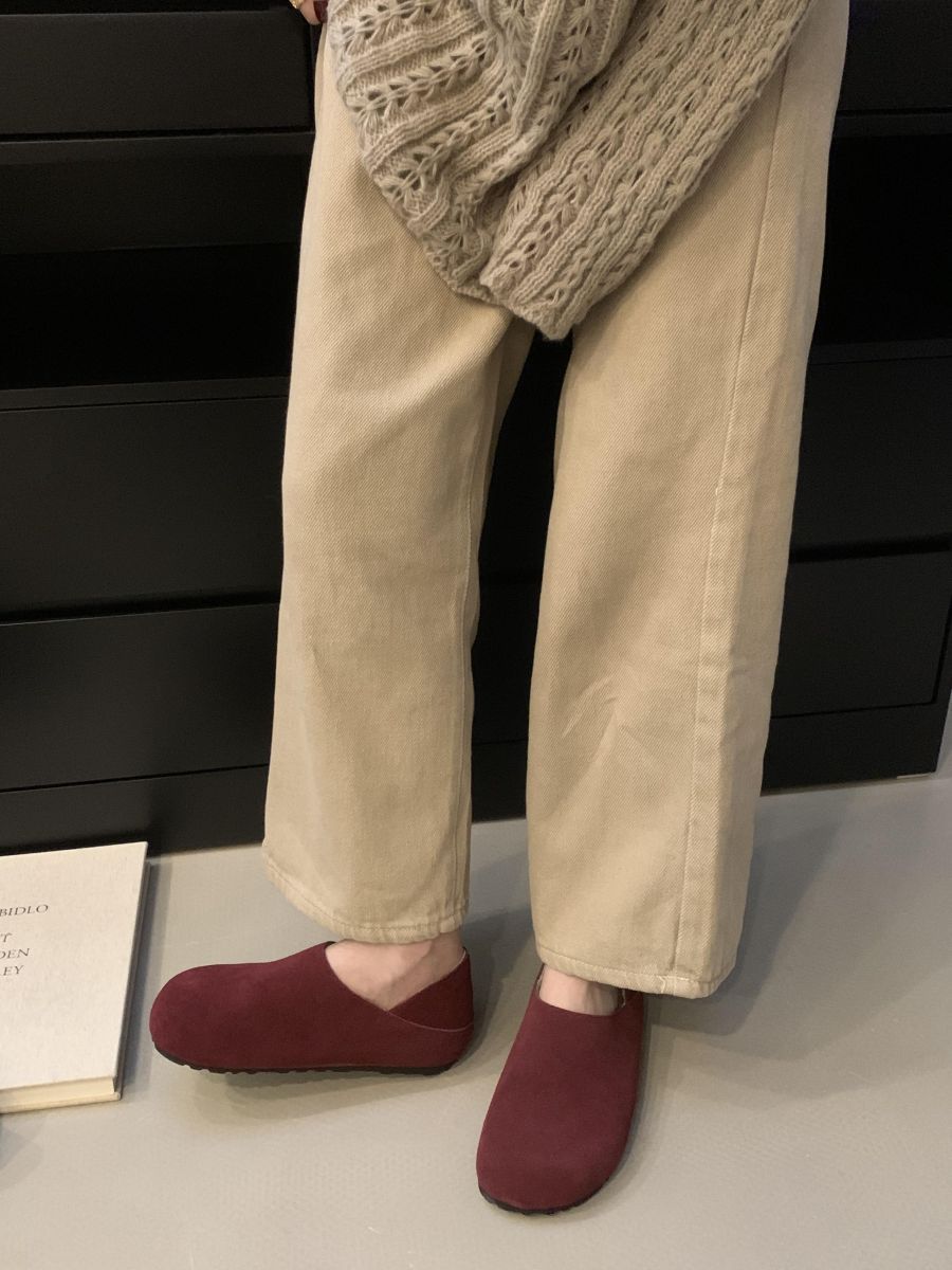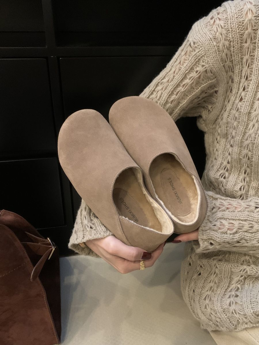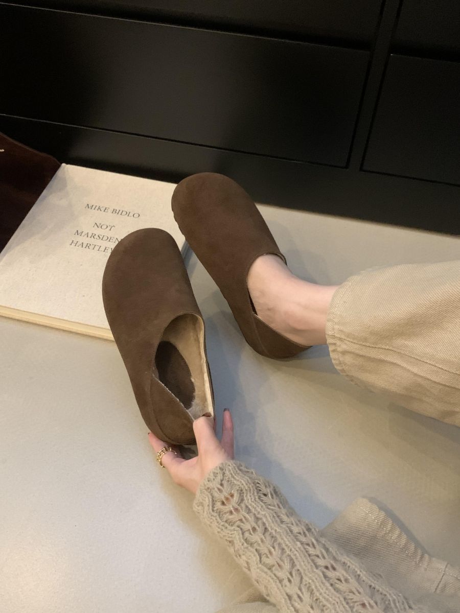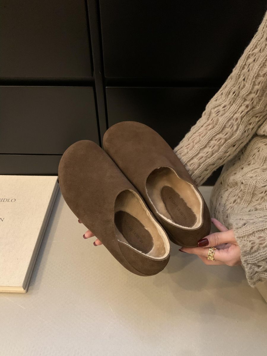 Mocasines de Felpa para Mujer Birkenstock Otoño 2025 Nuevos Puntera Grande Lindo Retro Zapatos Slip-On Zapatos Individuales