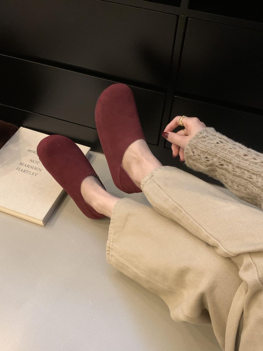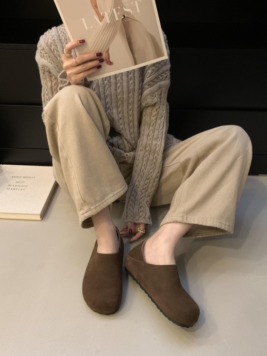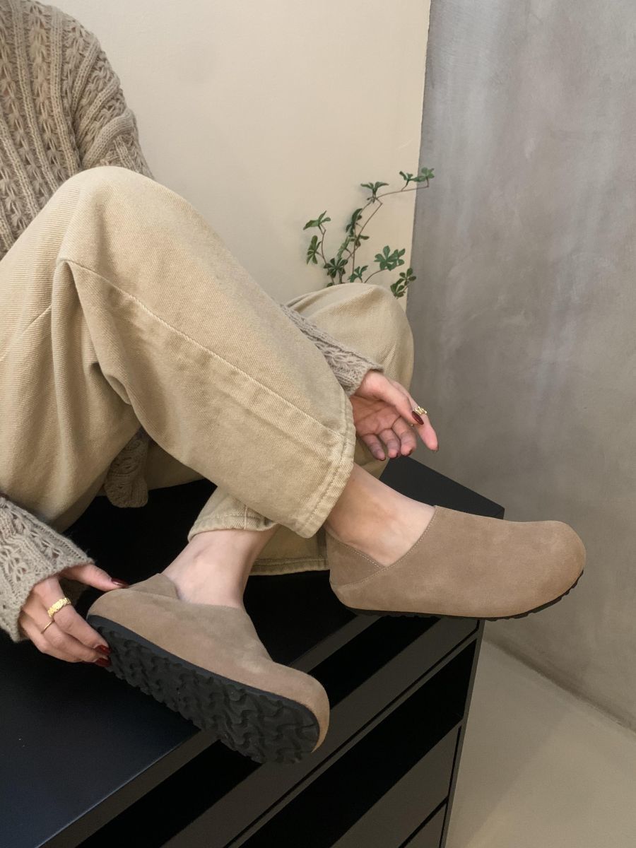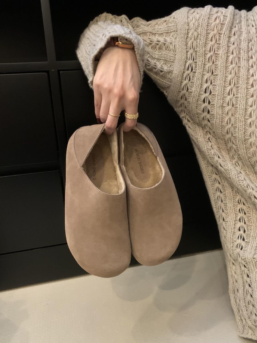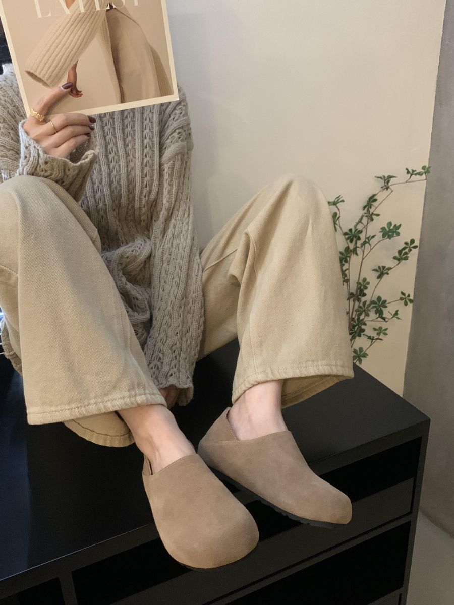 Mocasines de Felpa para Mujer Birkenstock Otoño 2025 Nuevos Puntera Grande Lindo Retro Zapatos Slip-On Zapatos Individuales