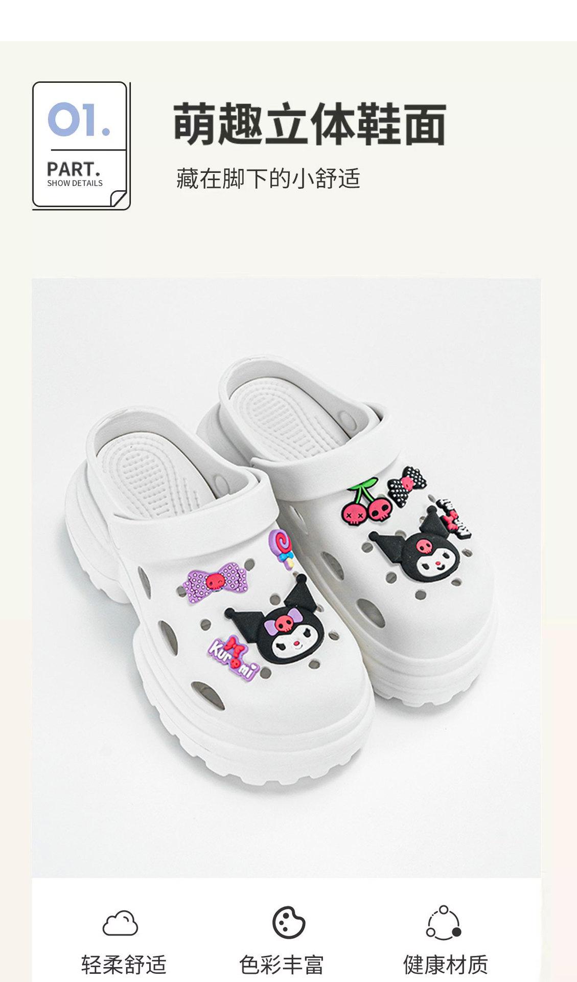 2024 Nueva Llegada Cyber Celebrous Dibujos Animados Kulomi Zapatos de Verano Tipo Cueva Sandalias de Playa de Moda para Mujer Suela Gruesa Combinable para Comercio Exterior