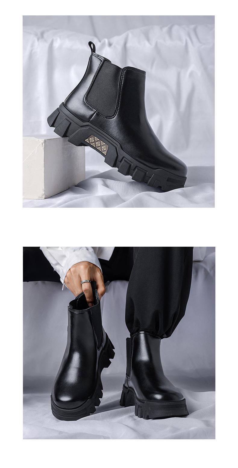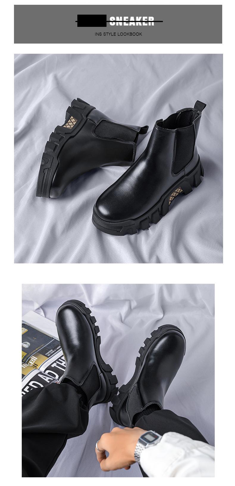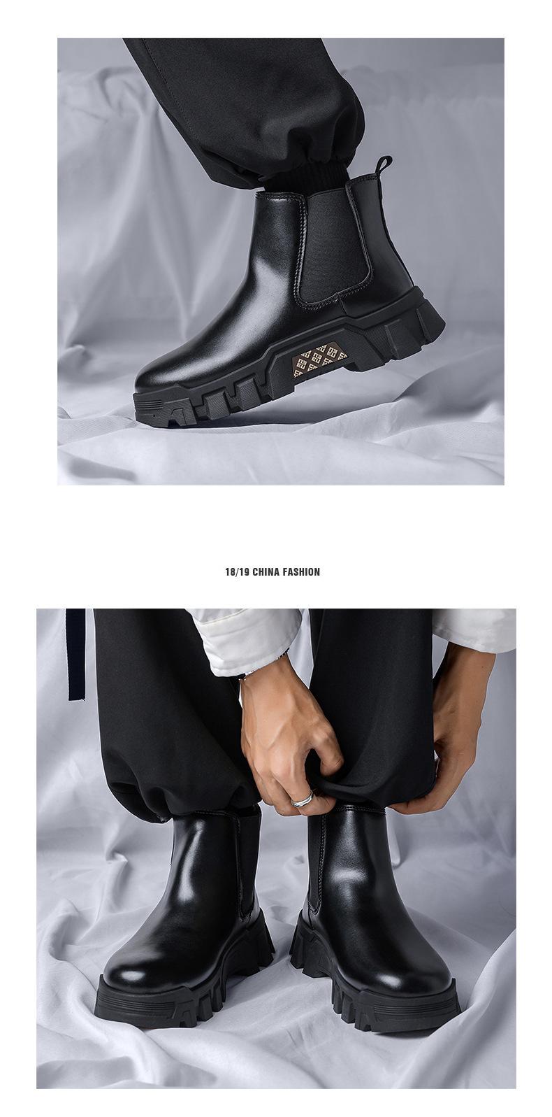 2024 Otoño e Invierno Nuevos Zapatos de Caña Alta Botas de Cuero Martin Botas de Trabajo Británicas de Moda Zapatos Chelsea Retro Casuales para Hombre