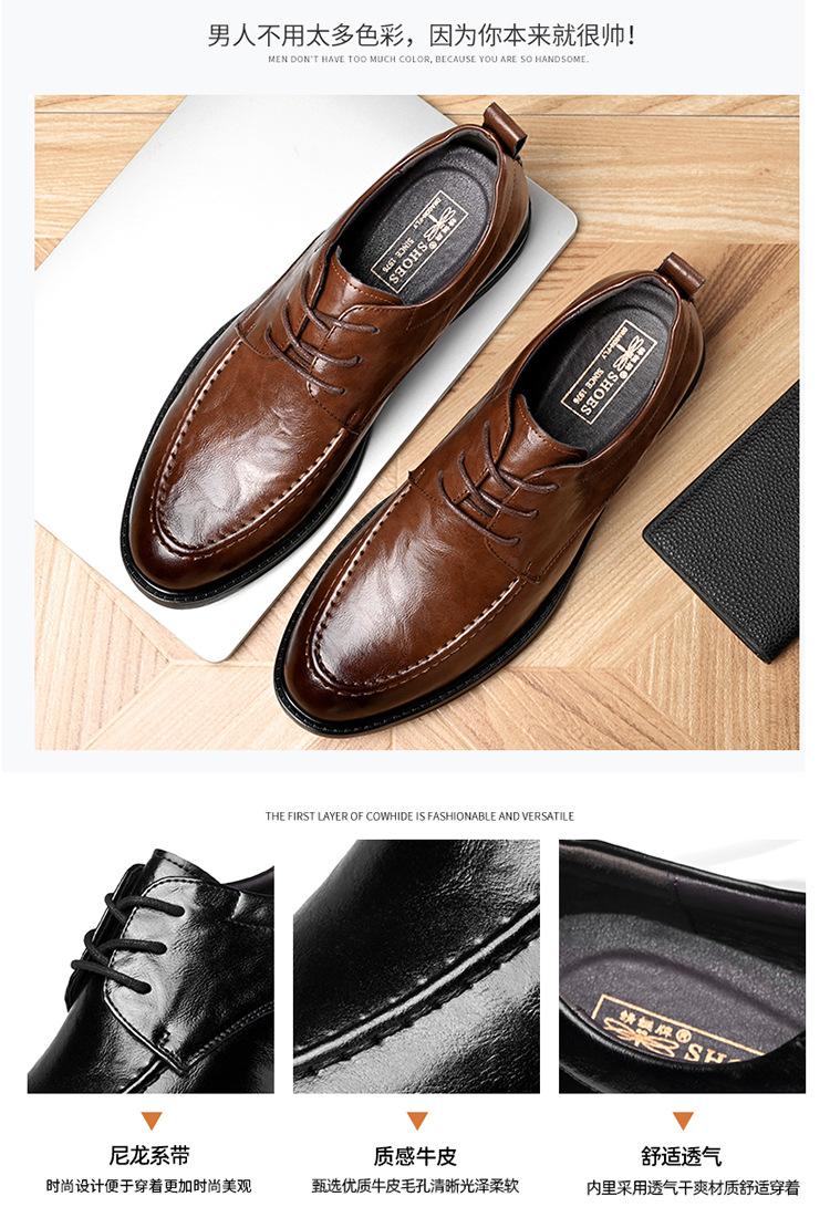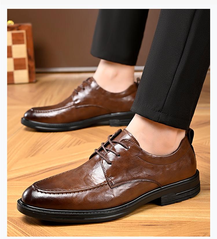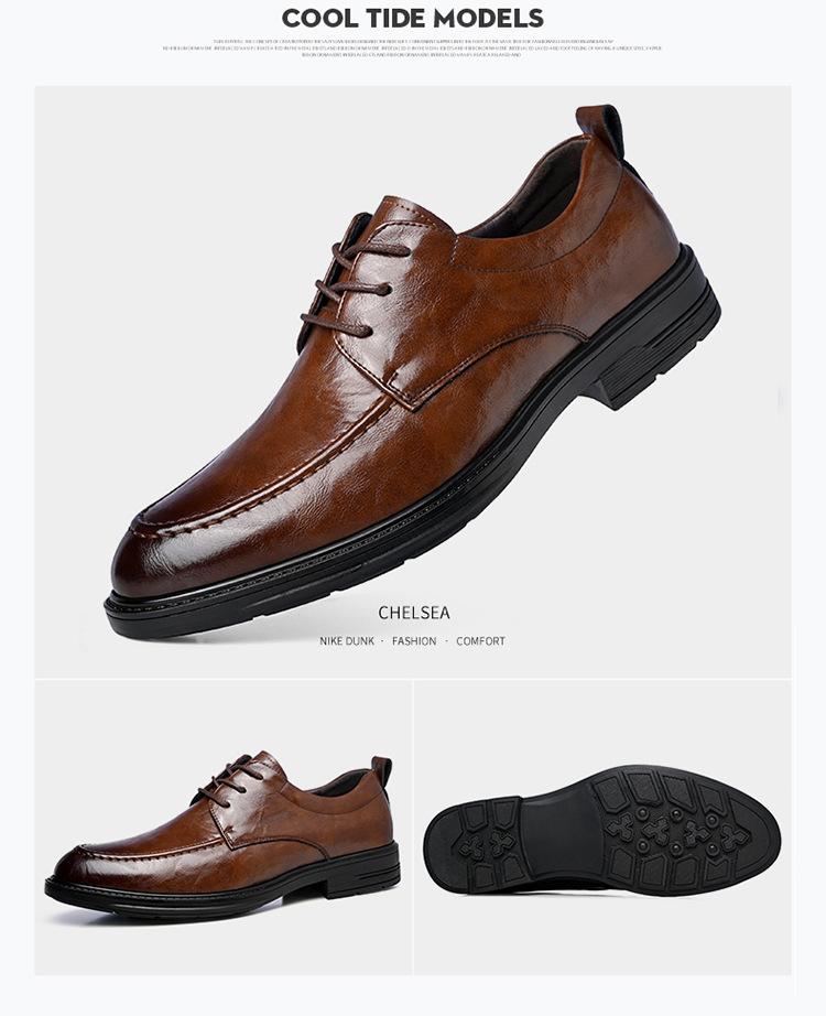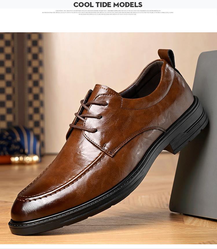 Zapatos de cuero Douyin de primera capa de piel de vaca para hombre, versátiles, transpirables, casuales, de negocios, de cuero de moda, de un solo paso, 8823D