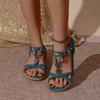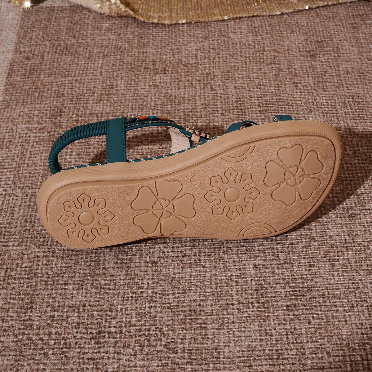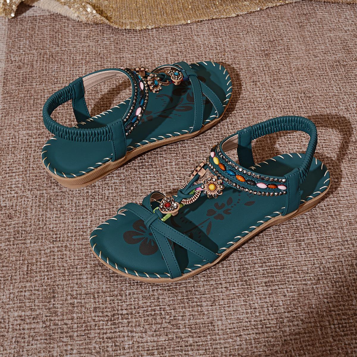 Sandalias Transfronterizas 2025 para Mujer Moda de Verano Pedrería Estilo Bohemio Suela Plana Punta Abierta Sandalias para Mujer Exportación Zapatos de Mujer