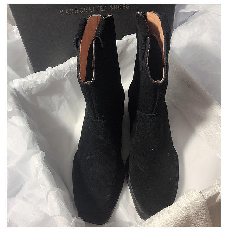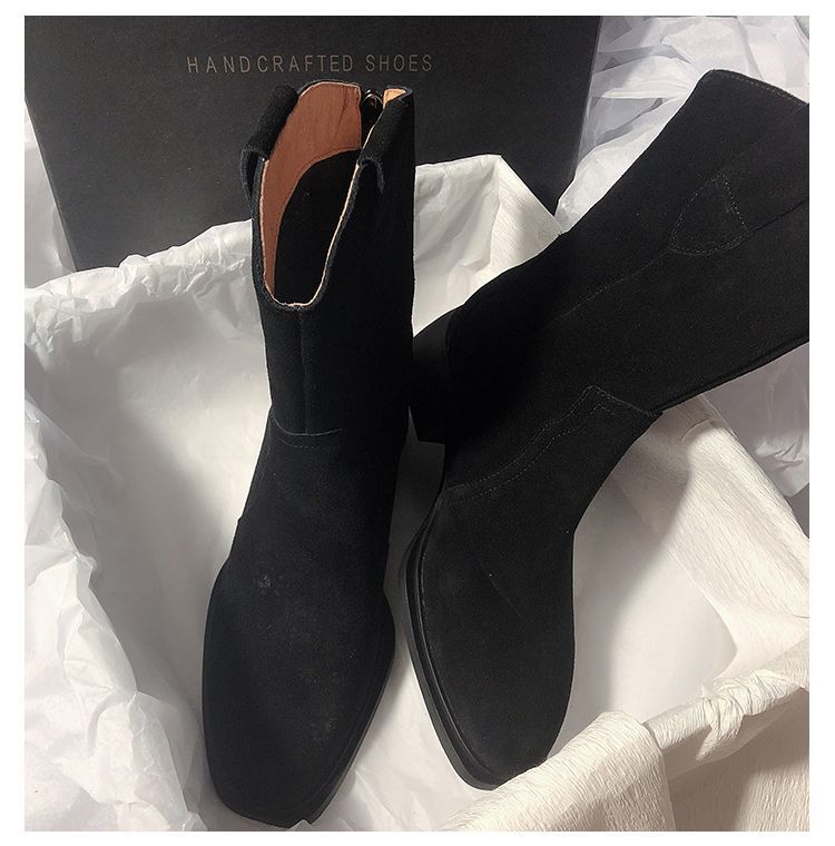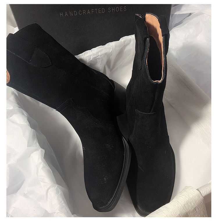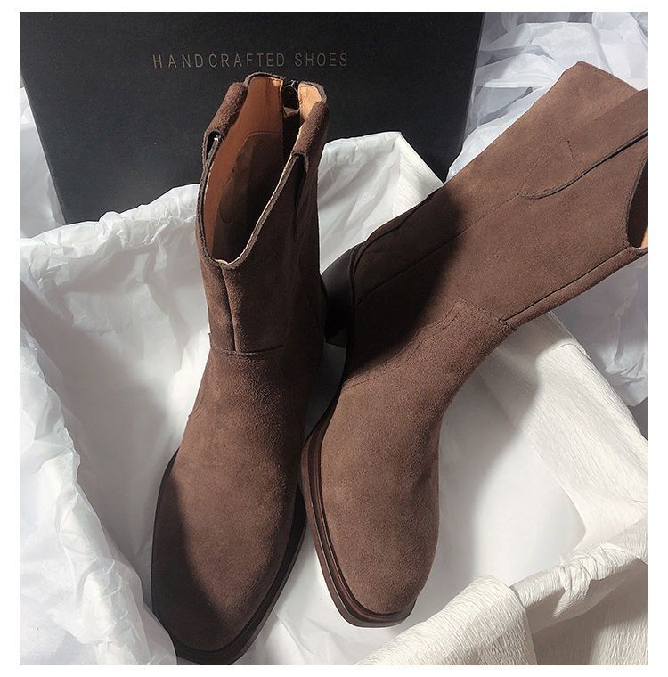 Botas vaqueras occidentales esmeriladas, botas de media caña, botines franceses de tacón bajo, estilo retro marrón, para mujer, otoño e invierno 2024.