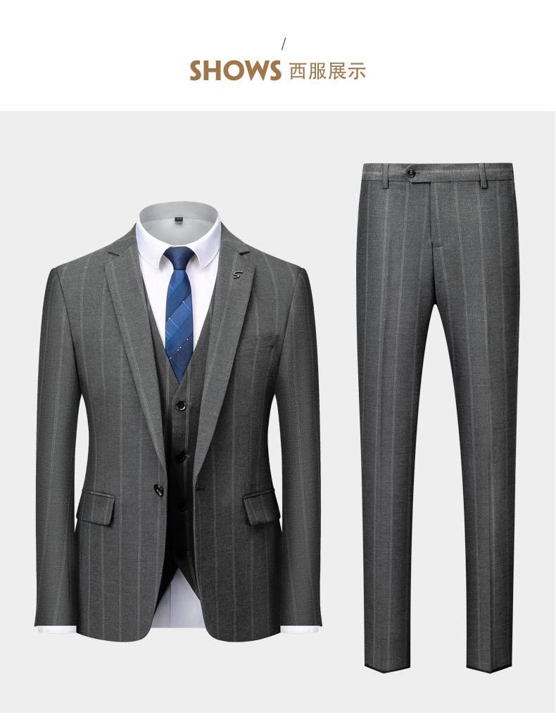Traje de tres piezas para hombre, nuevo traje de negocios informal a rayas, ajustado, para jóvenes coreanos, comercio exterior transfronterizo, 2023