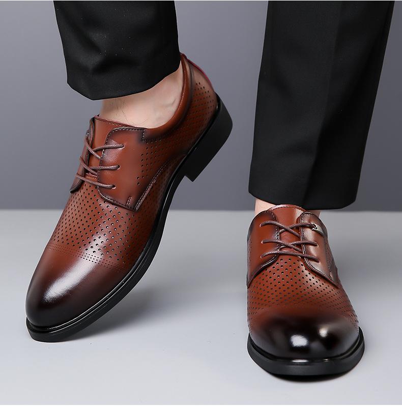 Zapatos casuales de cuero calados de verano 2024 para hombre, zapatos clásicos de cuero cómodos para hombre, tendencia transfronteriza