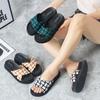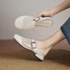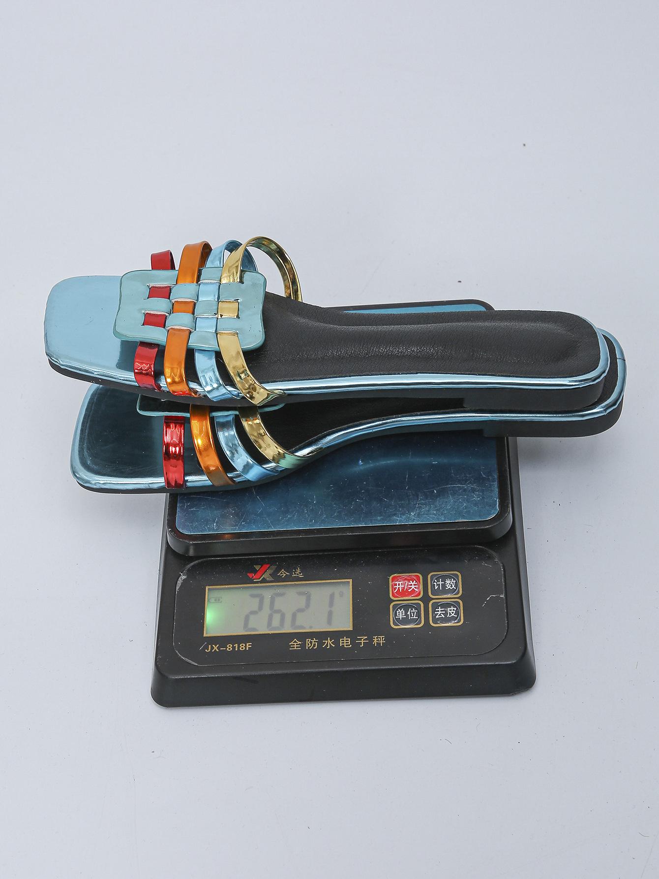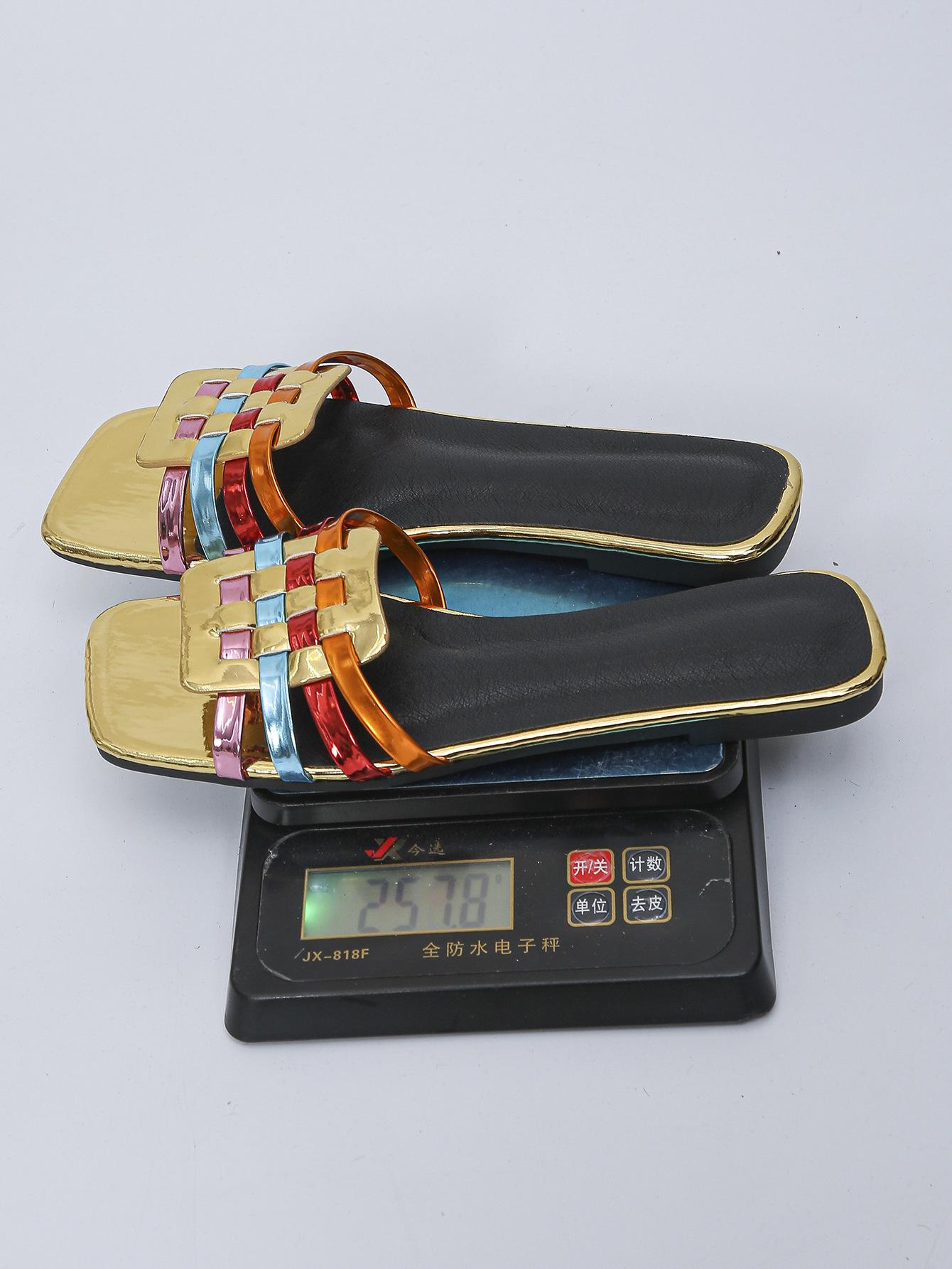Pantuflas planas tejidas coloridas para mujer, zapatos planos de moda con punta abierta, pantuflas transpirables de color contrastante, pantuflas de mujer