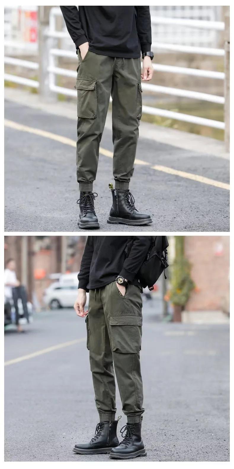 Pantalones casuales coreanos ajustados para jóvenes, resistentes al desgaste, holgados, de primavera y otoño con cordones en los tobillos para hombre, venta al por mayor