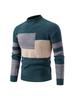 Suéter de estilo perezoso para hombre, otoño e invierno 2024, nuevo suéter de punto de cuello alto medio, camisa de base con bloques de color para hombre, suéter cálido