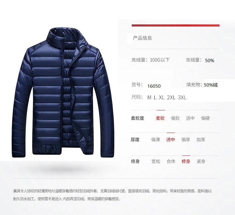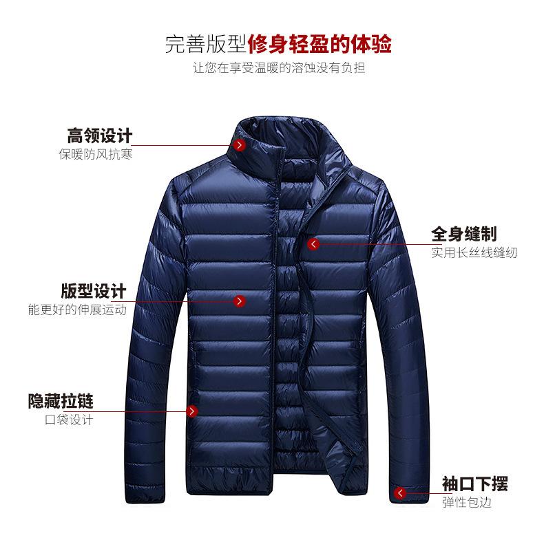 Chaqueta de plumón ligera de otoño e invierno 2020, nueva, de moda para hombre, con cuello alto, corta y cálida, de plumón de pato blanco 50 para hombre