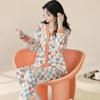 Pijama de mujer, cárdigan de primavera y otoño, informal, de manga larga, estilo popular en Internet, bonito conjunto de ropa de abrigo para mujer con dibujos animados para el hogar.