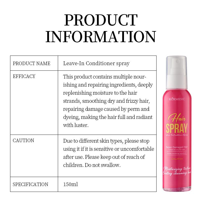 KORMESIC spray para el cuidado del cabello Spray para el cabello sin enjuague Fragancia fresca Comercio exterior transfronterizo Venta al por mayor