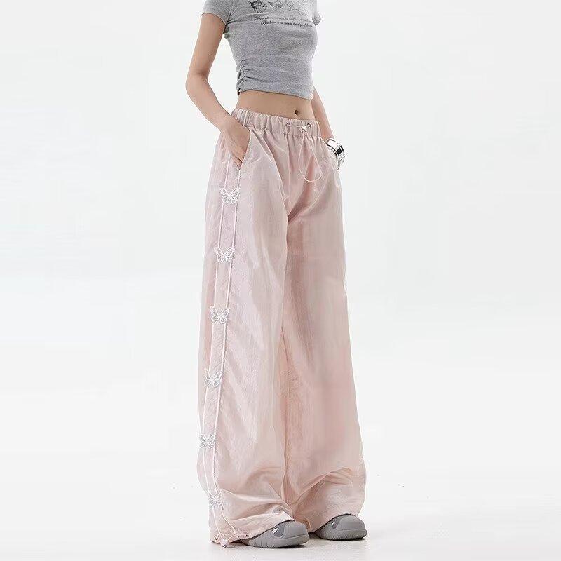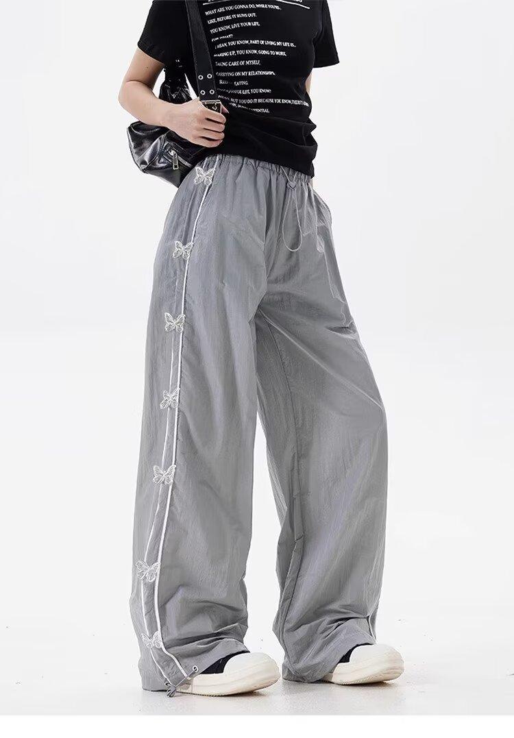 Verano y Otoño 2025 Nuevos Pantalones Casuales de Pierna Ancha con Lazo para Mujer Sueltos Deportivos Más Fáciles de Combinar Cintura Alta Pierna Recta Peto Delgado