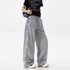 Tirantes de mezclilla de un solo hombro para mujer, verano 2024, nuevo diseño, pantalones holgados de pierna ancha, versátiles, de cintura alta y largos hasta el suelo.