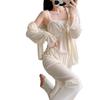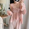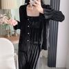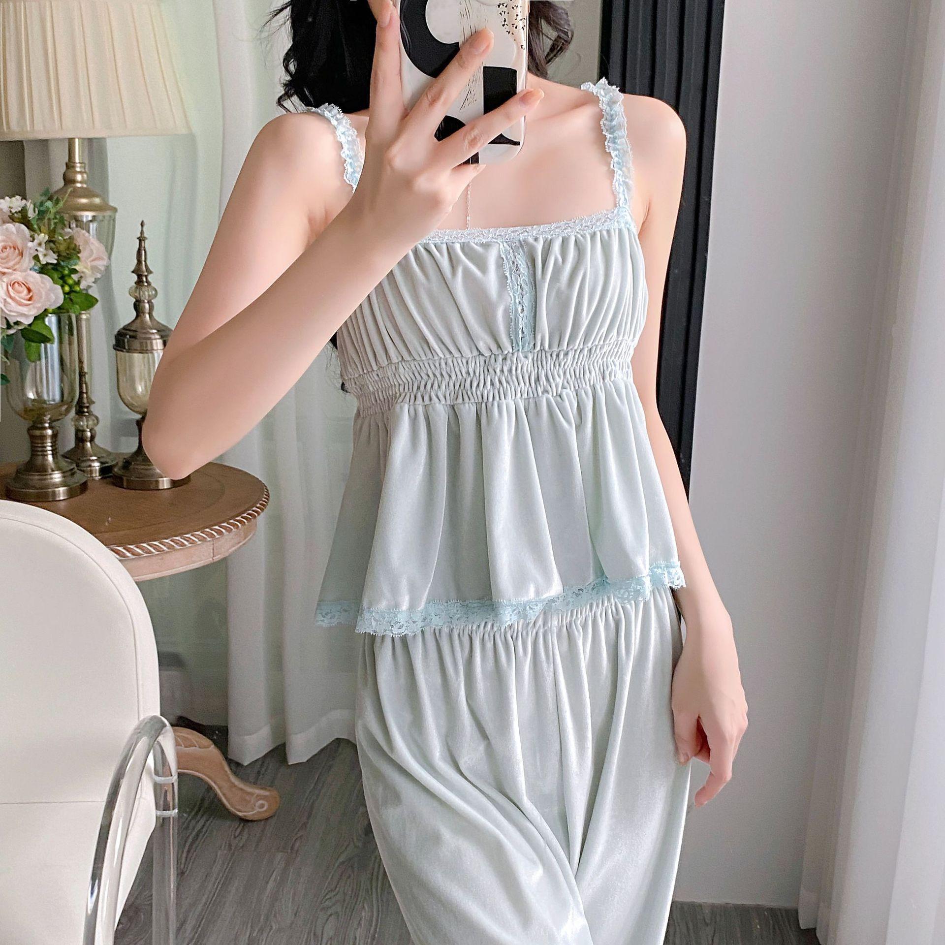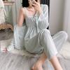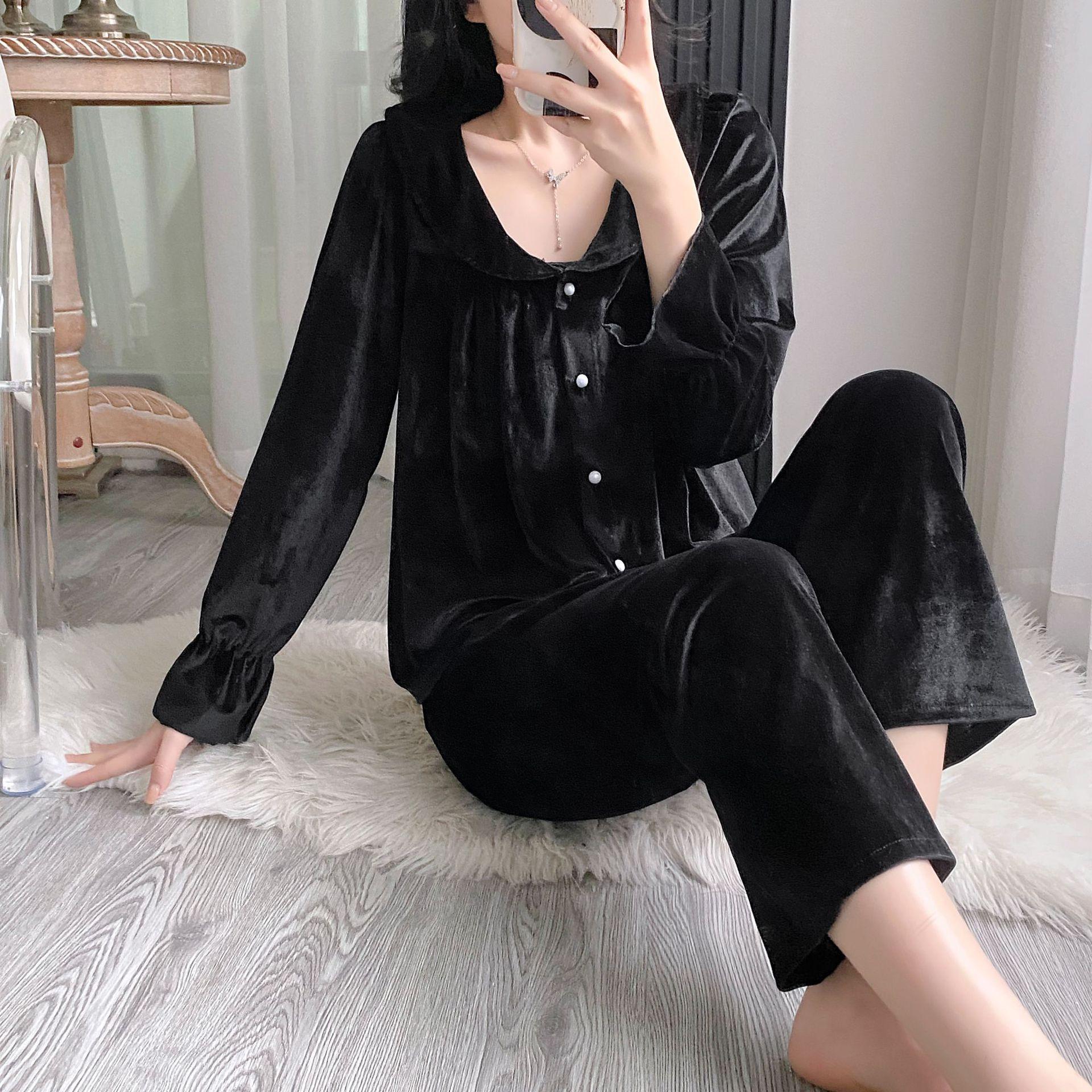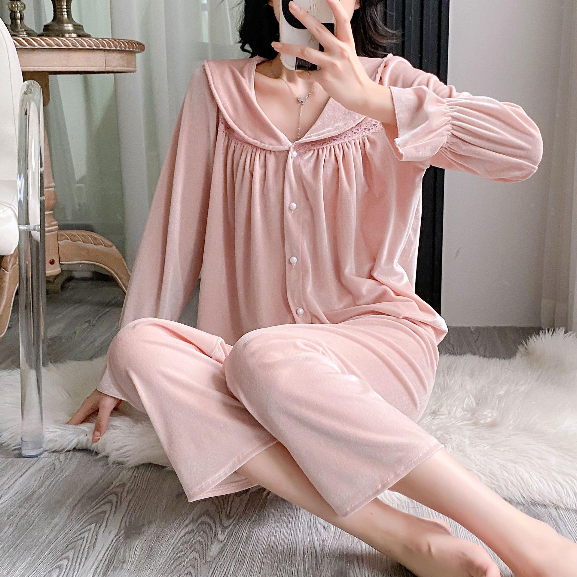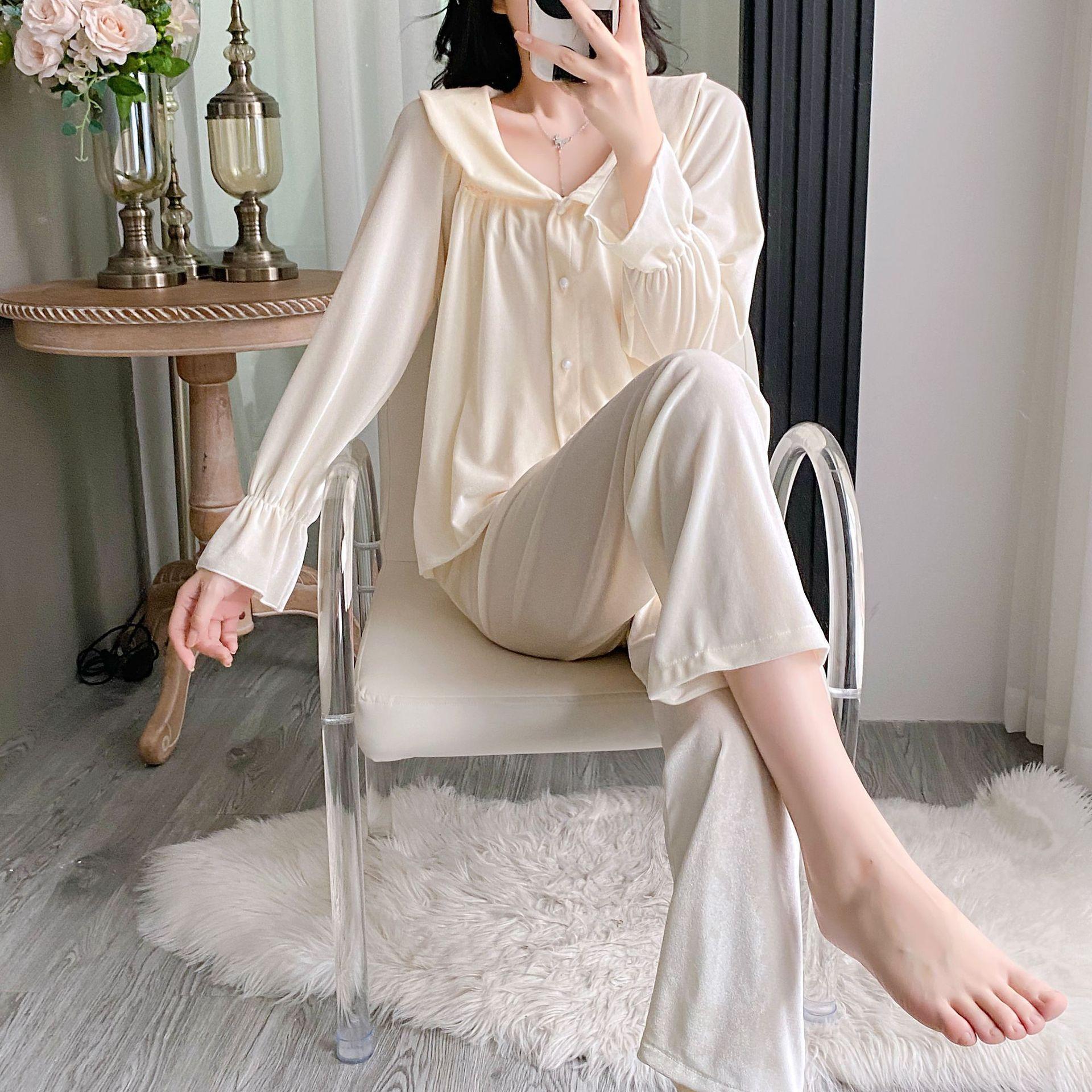 Otoño Nuevo Pijama de Terciopelo Dorado para Mujer Sexy Tirantes Pantalones Camisón Conjunto de Tres Piezas Deseo Puro Ropa para el Hogar Traje Francés