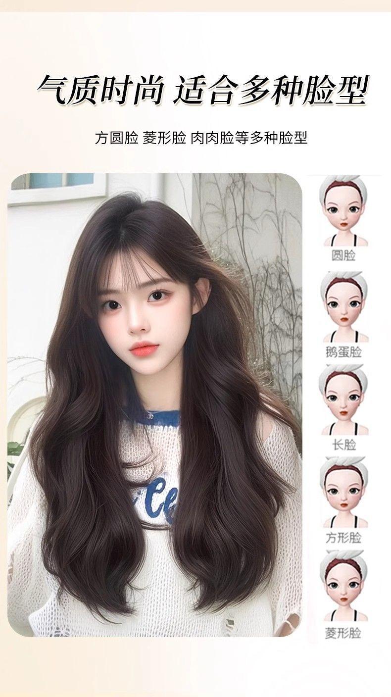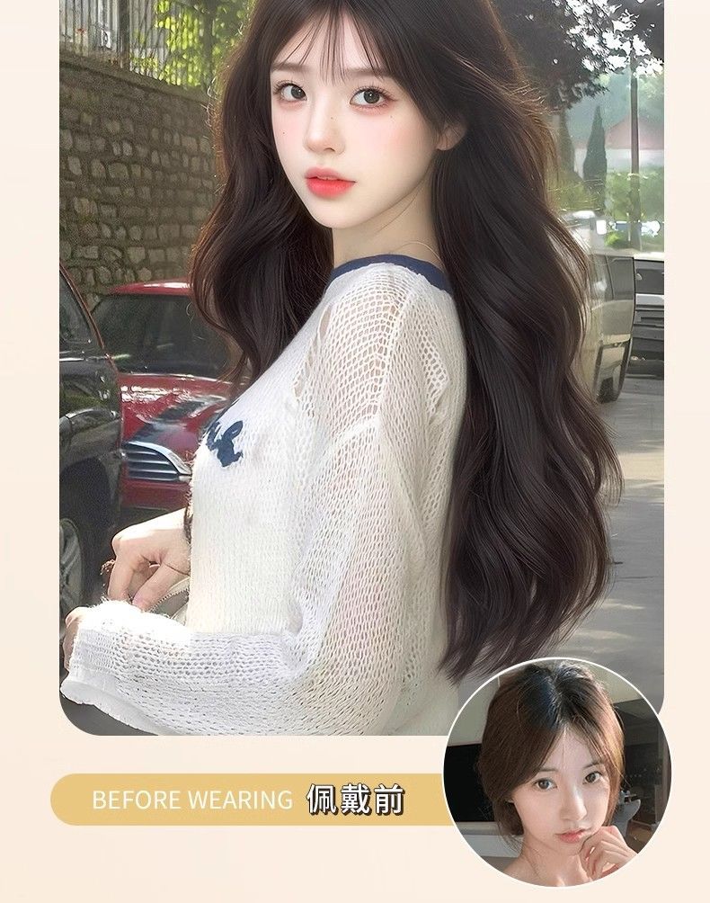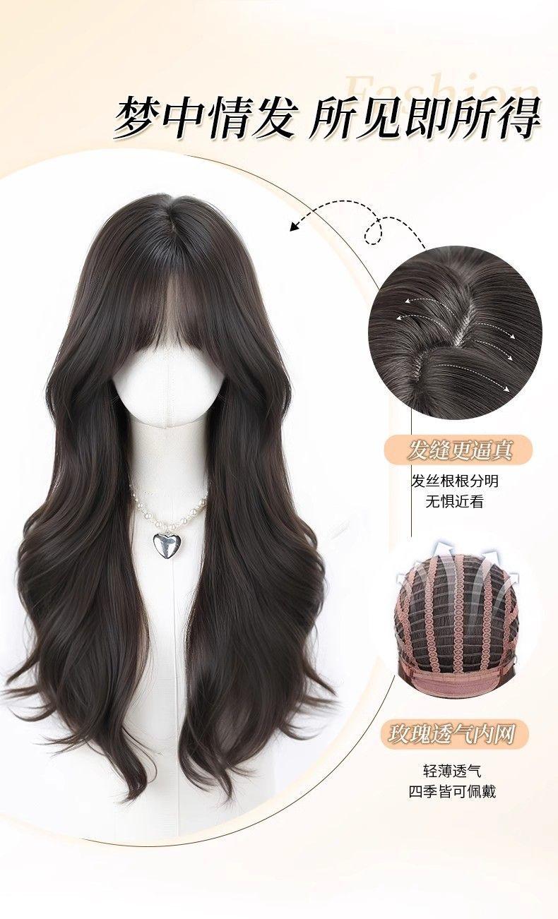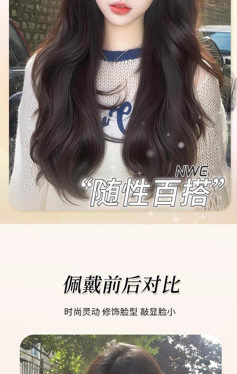 [Momento Corazón] Peluca Postizo Completo para Mujer Estilo Coreano Onda Grande Esponjosa Natural Cabello Largo Rizado Peluca de Moda Cobertura