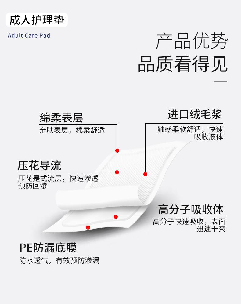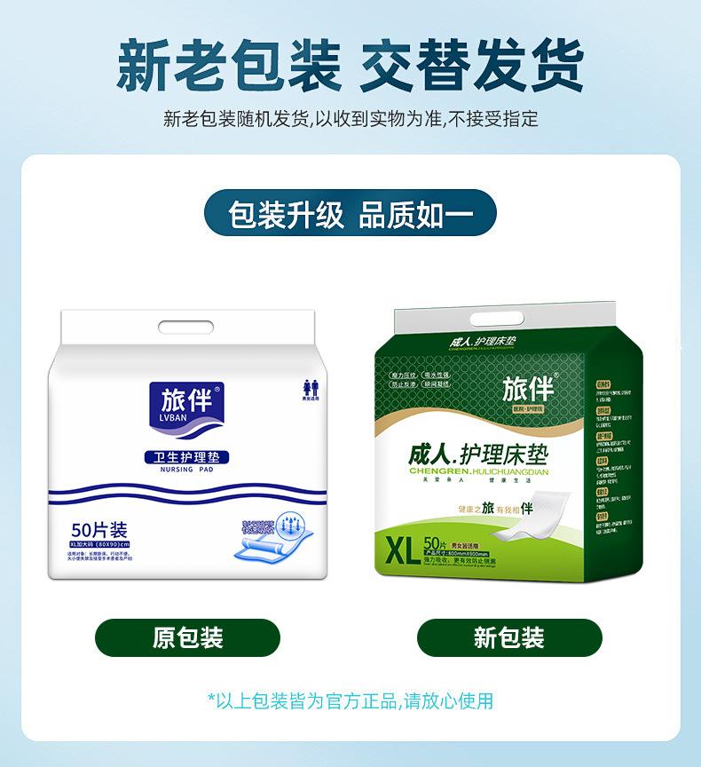 Almofada de cuidados para acompanhante de viagem, fralda descartável para adultos e idosos, fralda 8090, colchão de cuidados especiais, 50 peças