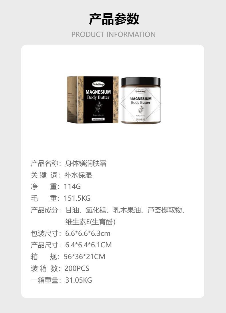 Crema hidratante corporal con magnesio WOODSLEEP. Hidratante y humectante. Crema corporal nutritiva y suave para la piel.