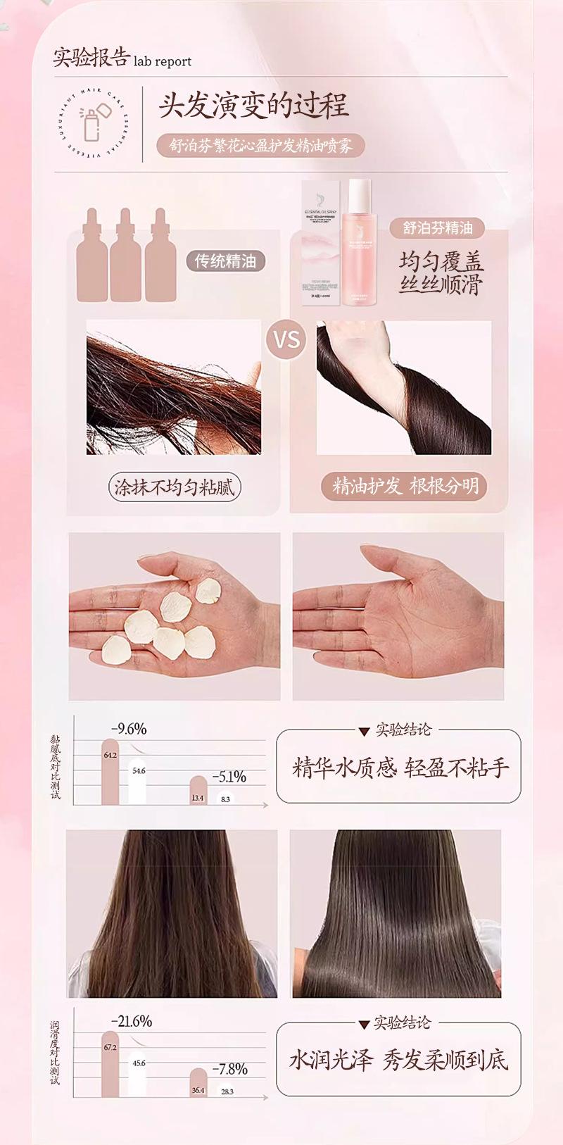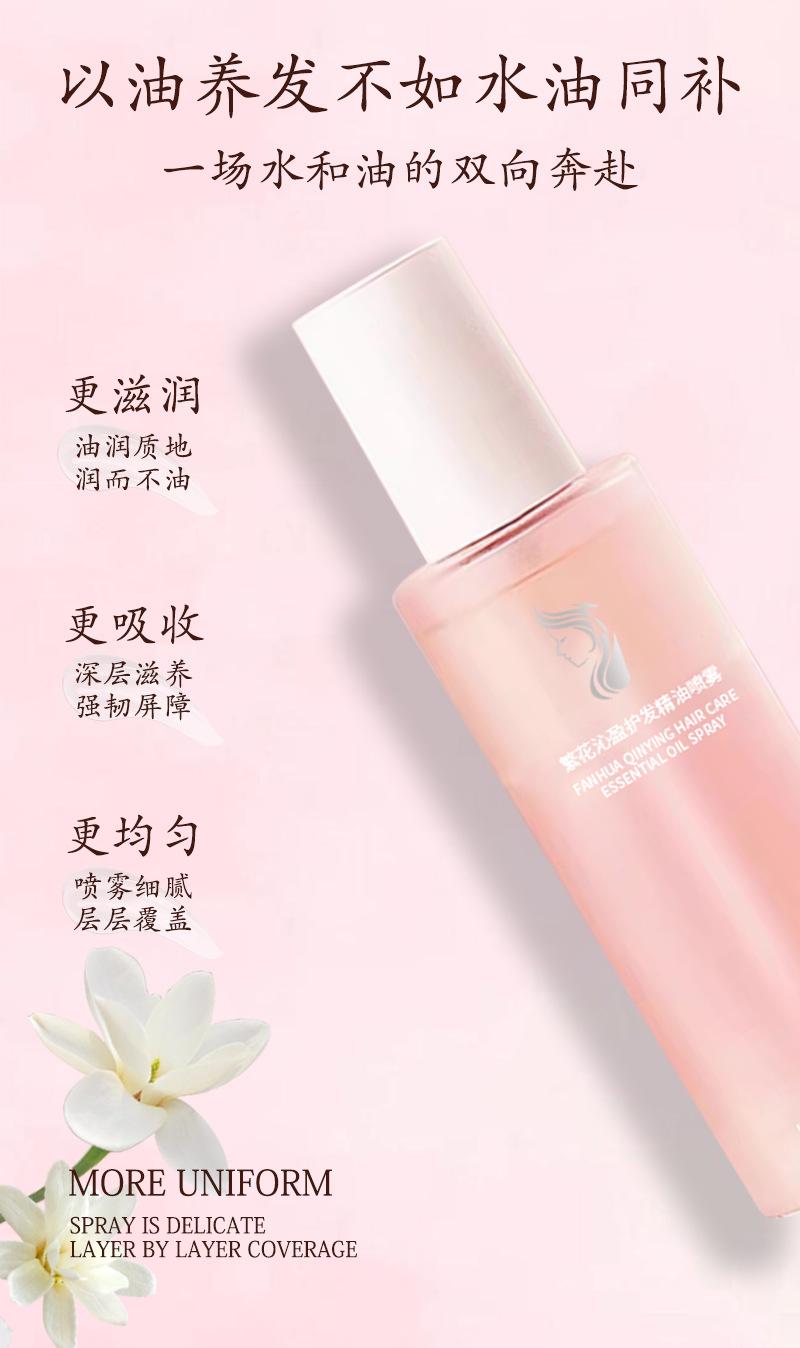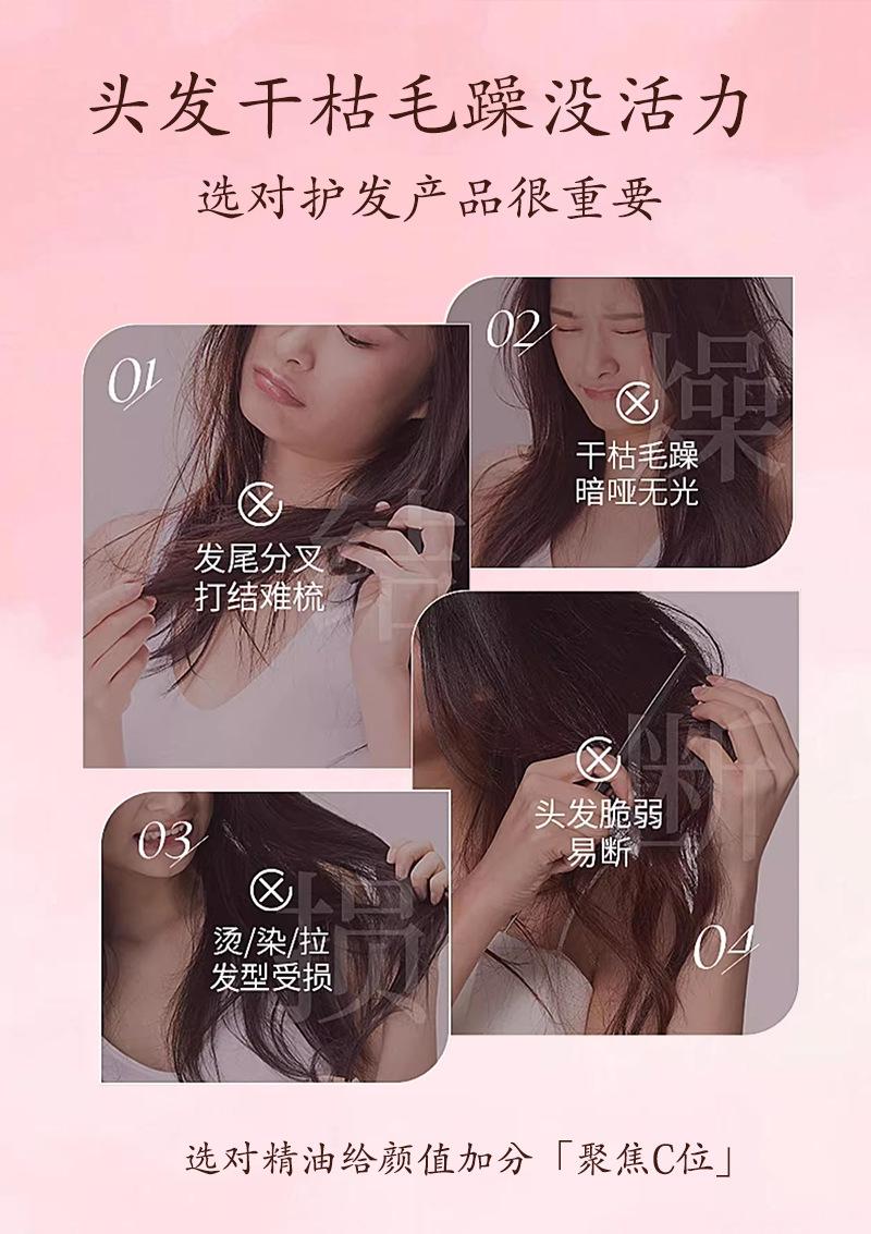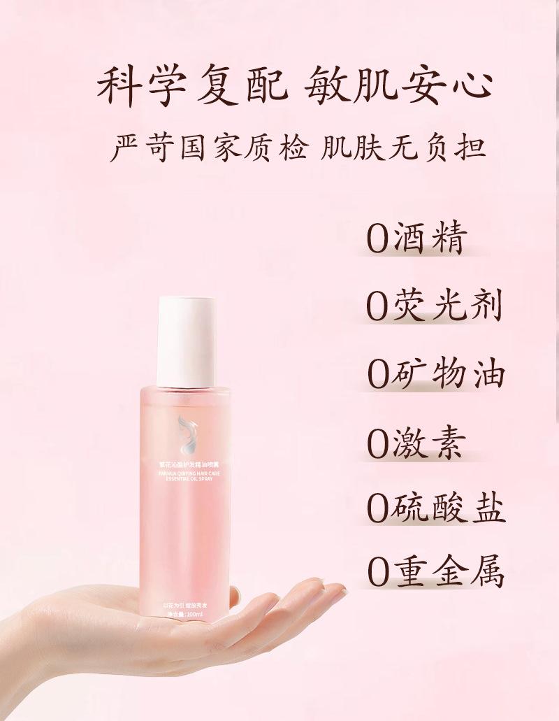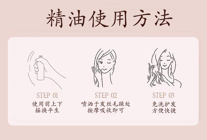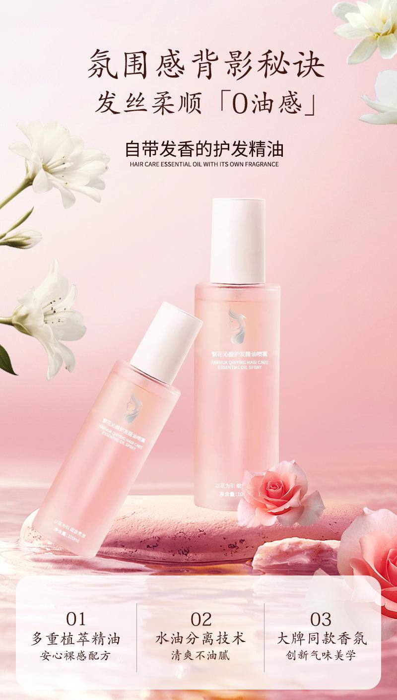 Spray de Aceite Esencial para el Cuidado del Cabello para Mujeres, Anti-Frizz, Suave, Seco, Permamentado, Teñido, Dañado, Fragancia Duradera, Aceite Esencial para el Cuidado del Cabello con Fragancia, Sin Lavado