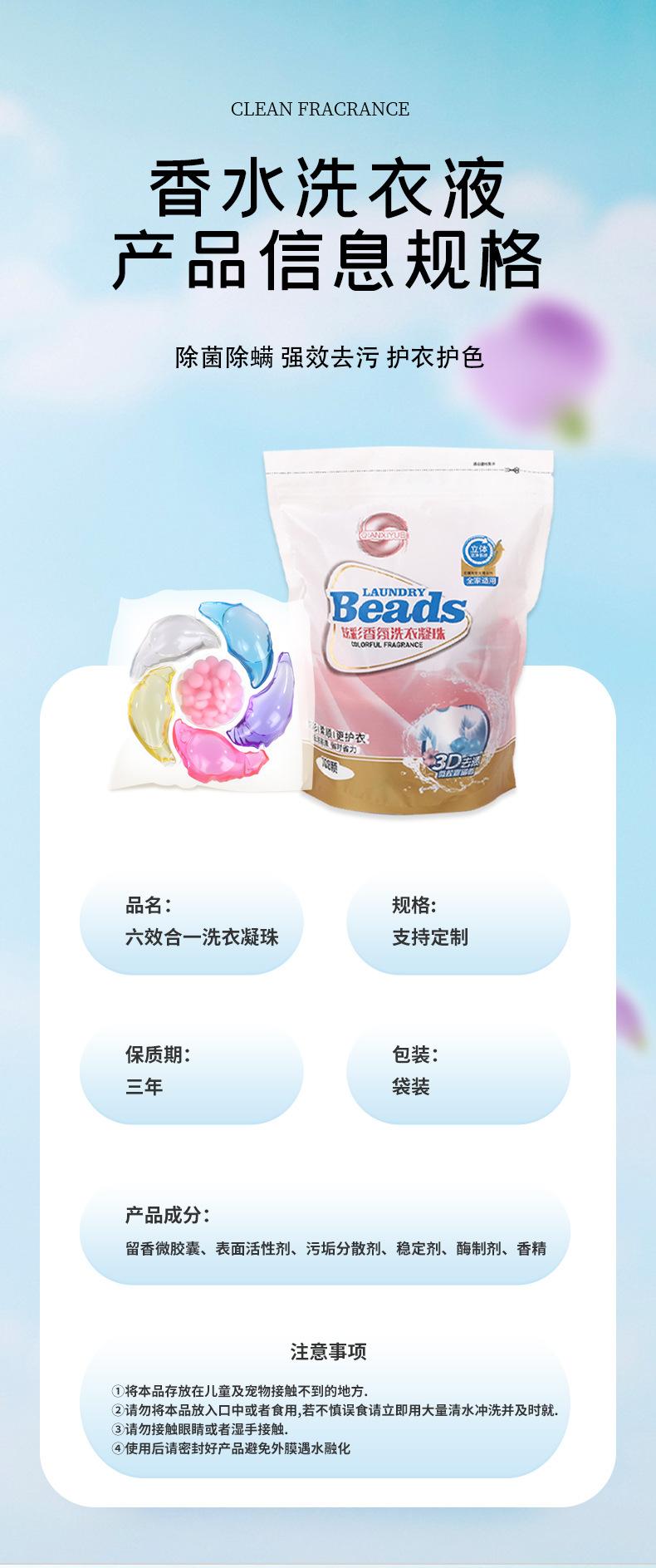 Perlas de lavandería seis en uno de 10 g, directas de fábrica, perlas de lavandería de seis cavidades, fragancia duradera, limpieza profunda