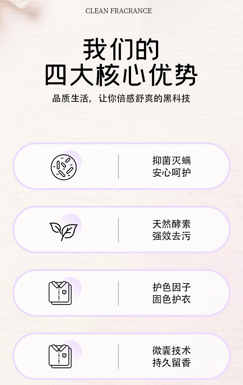Deep cleaning, Antibacterial, Sterilization, Mite removal, Color protection, Softening, Long-lasting fragrance...
