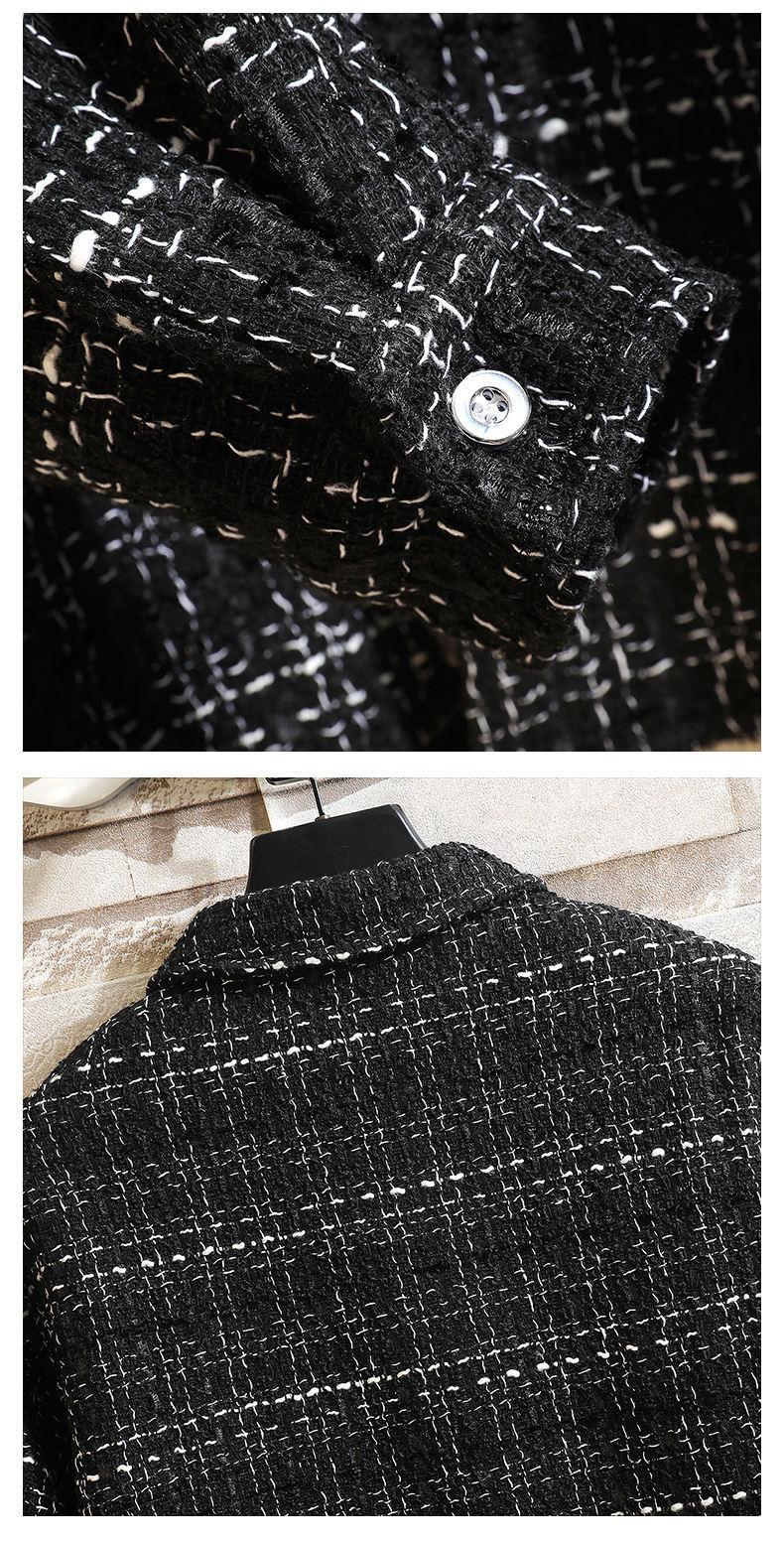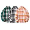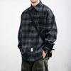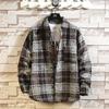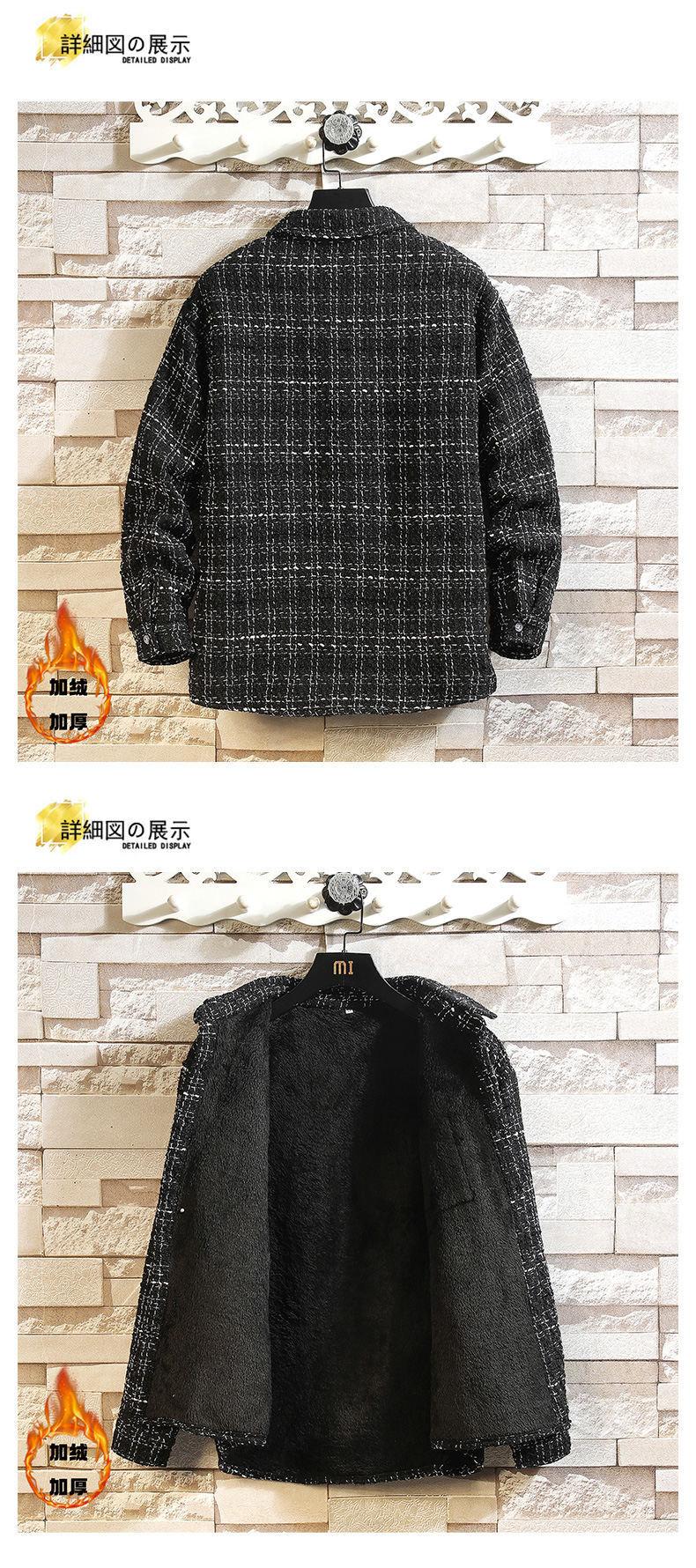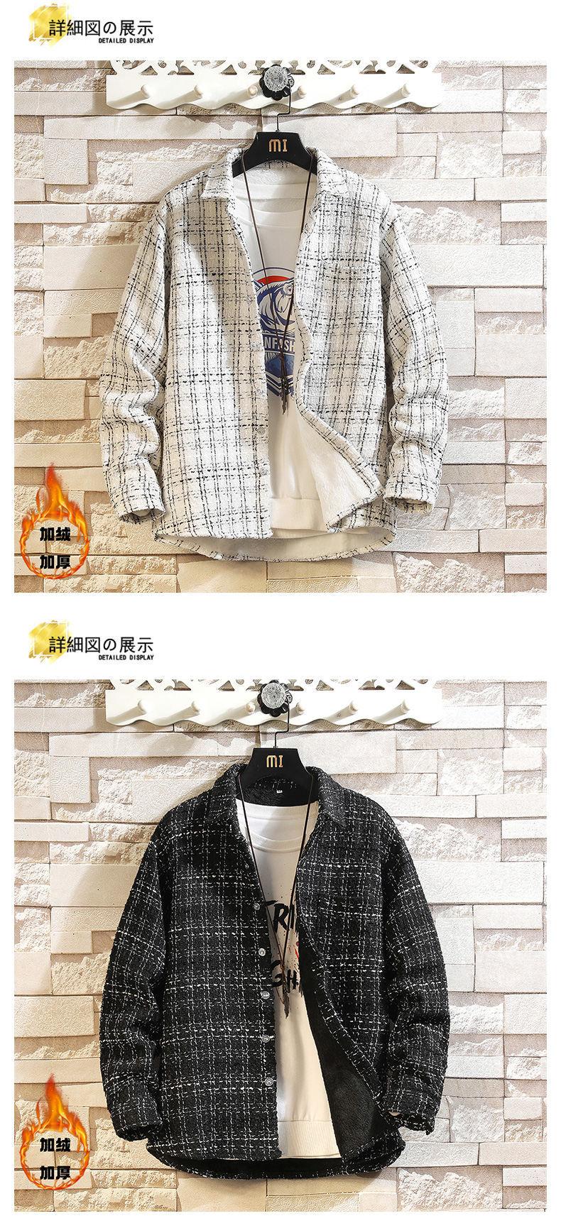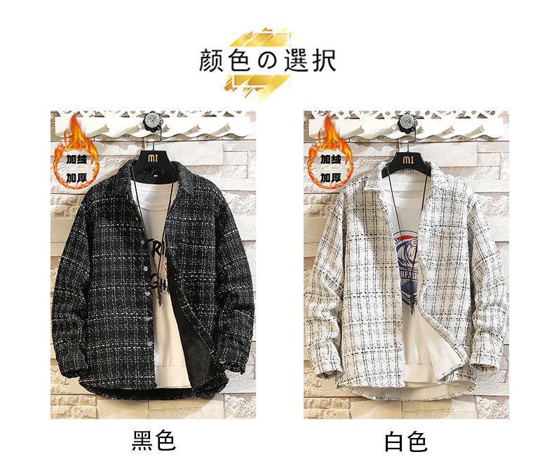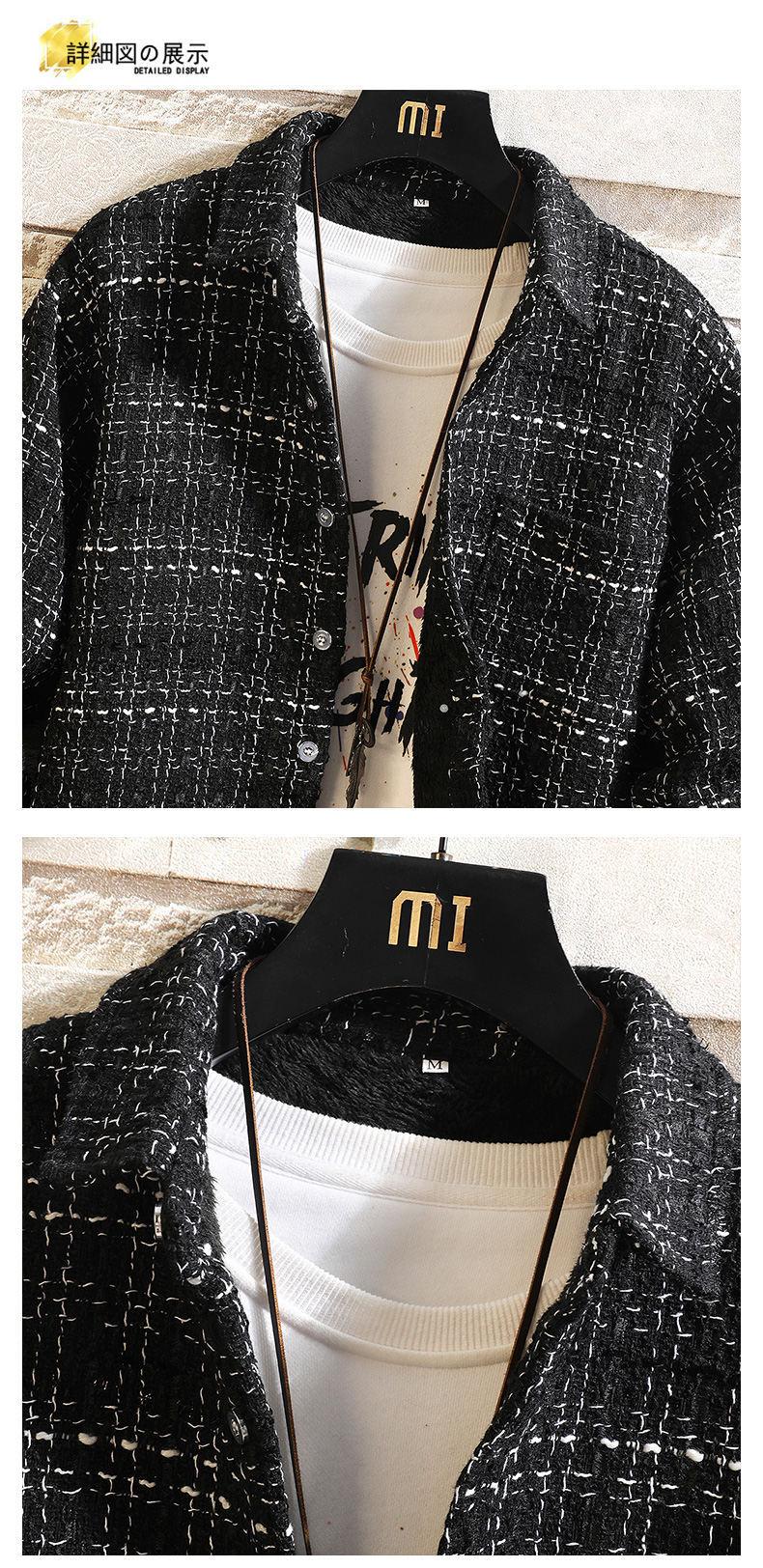 Camisa estilo Chanel para hombre de manga larga, camisa holgada a cuadros, chaqueta casual, piel de cordero más terciopelo engrosado