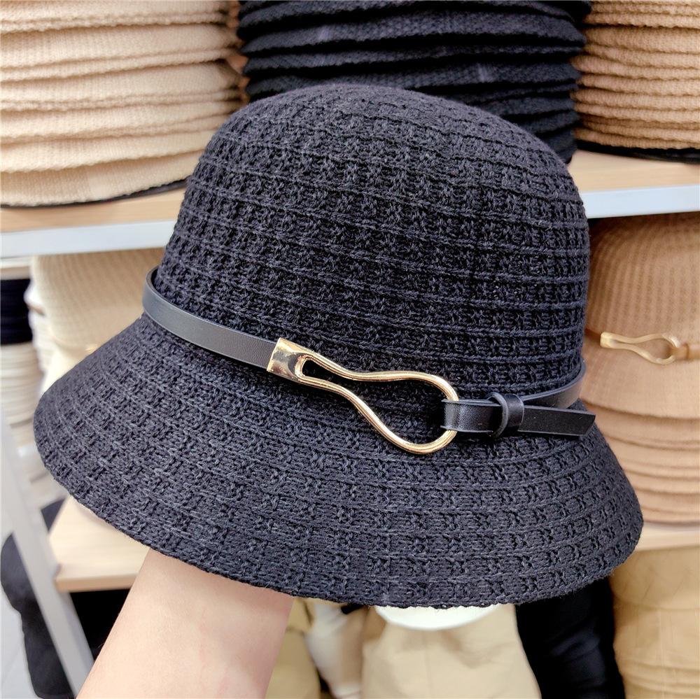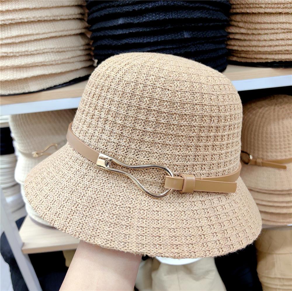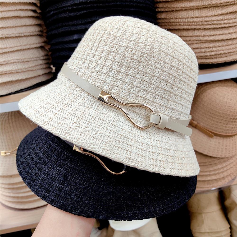 Hebilla de cinturón de mariposa sombrero de pescador tejido estilo coreano sombrero de cuenca versátil estilo japonés para mujer nuevo sombrero de copa retro moda